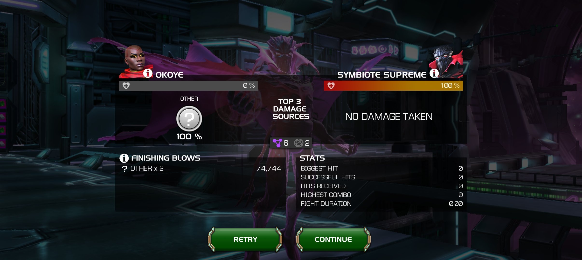 Instant Defeat at Fight Start – Okoye vs Symbiote Supreme (Event Quest Ch.3 Quest 2)