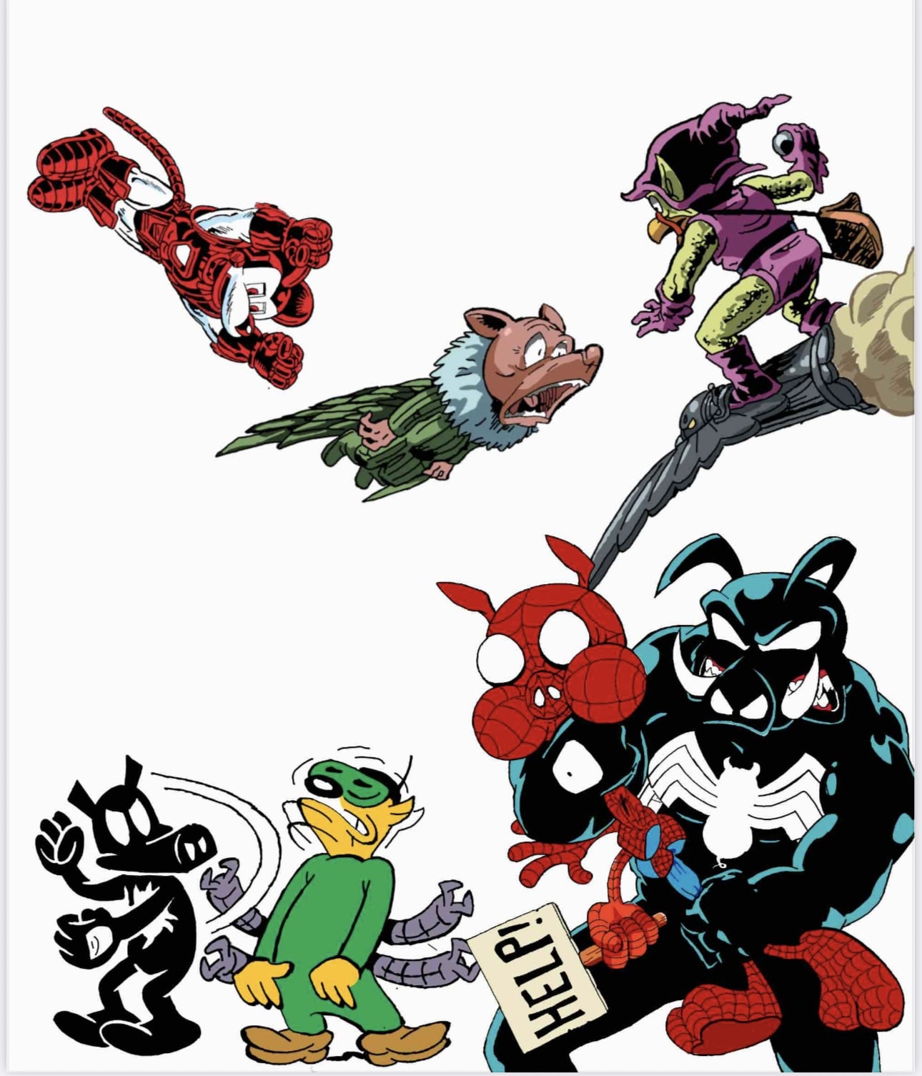 I’ve been hard at work today I slaved for 7 hours just throwing together some spider-ham drawings, my wrist is very sore.