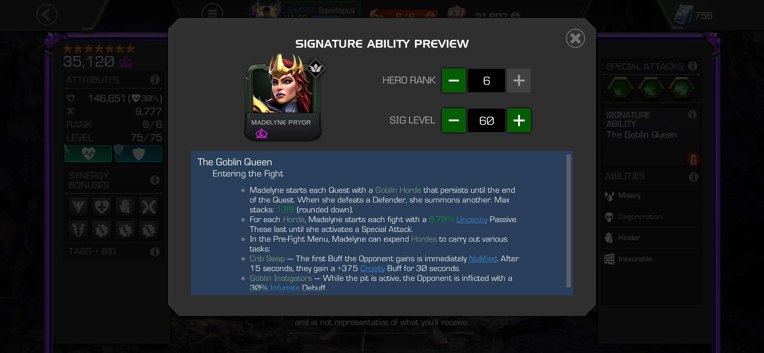 In the champion ability page, you can now see exactly how their sig ability scales with sig level with full granularity, which also means you now can know exactly what benefit you’re getting when you invest sig stones into a champion.