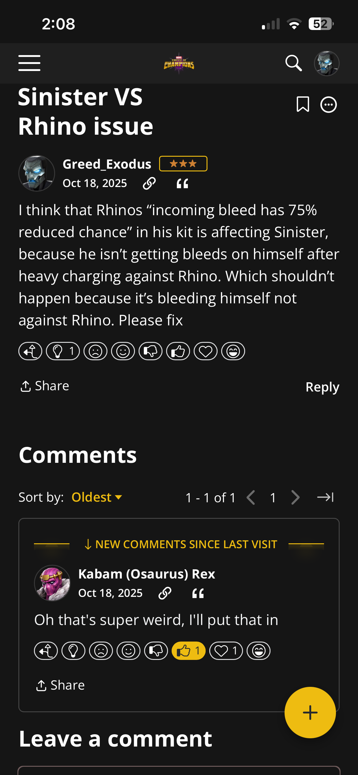 I don’t know If kabam is purposely trying to make less Rhino counters available or if they don’t care that certain interactions are bugged, but either way it needs to be addressed although I already have months ago. Fix this bug please, osaurus mike kabam whatever his tag is still haven’t done anything about it since October 2025