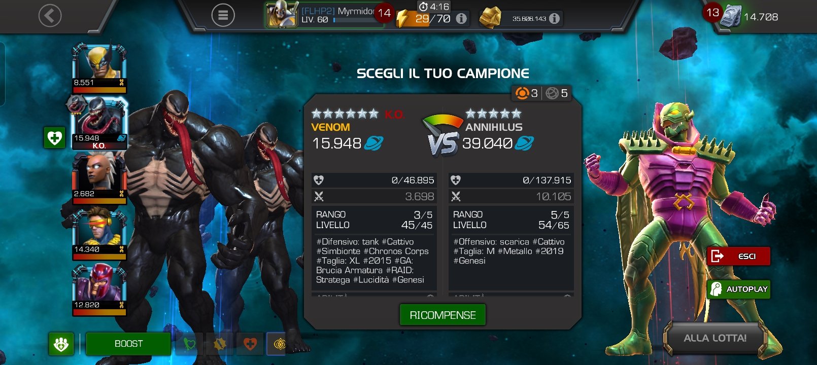 Both Venom and Annihilus reached 0% HP almost simultaneously because of DOT: the game still played Annihilus's winning animation, despite him having exactly 0 HP remaining at the end of the fight.