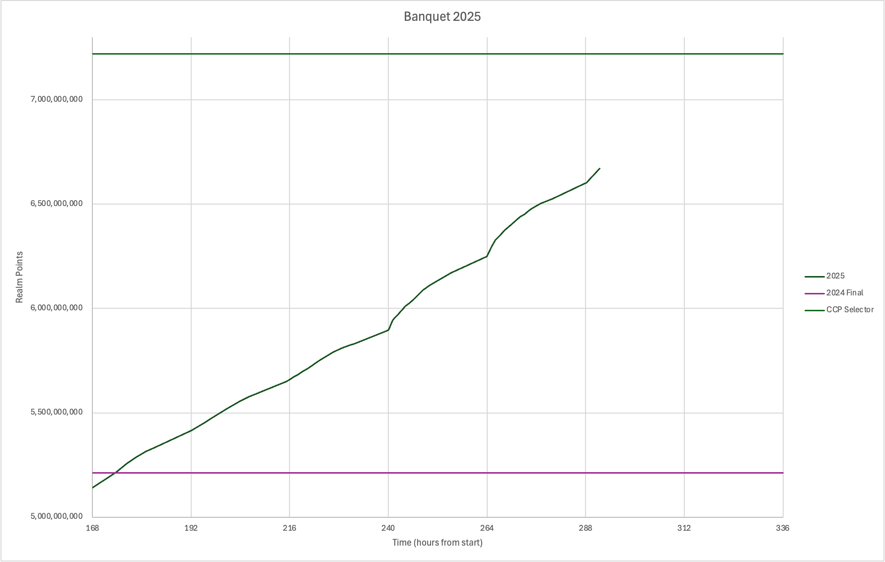 We got Yet Another Scoring Bounce this morning. We have the special arenas, we have Radiance roll over, and it seems whenever the players get more ways to buy crystals, they take 'um. That bounce is not as big as the one on Monday or Tuesday, but it is there. How long it persists is important, and there's also the possibility for a last day bounce as well, as something similar happened last year as players did their last minute crystal spins.