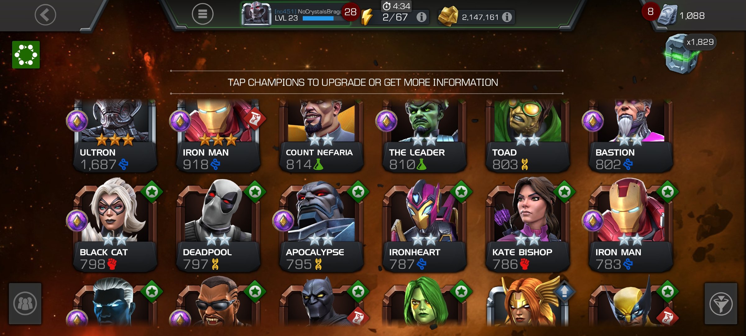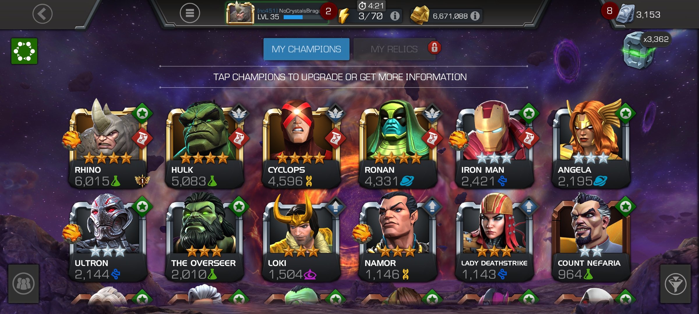 Below is my roster now. Not much changed except getting ihulk and ranking up all my 4* champs