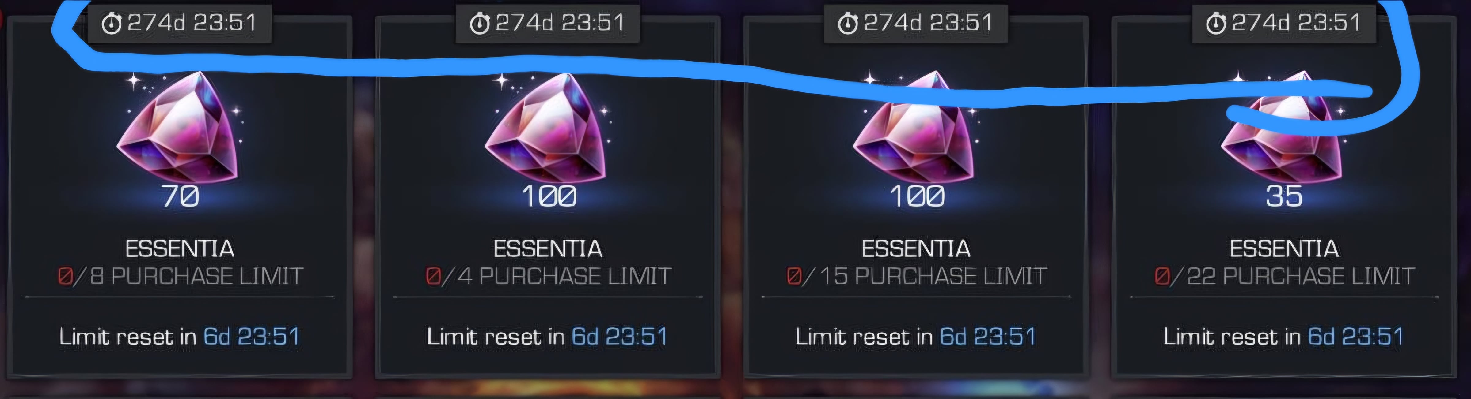 I'm not even a resource hoarder and i don't care if they get more essentia to start. There are purchase limits.