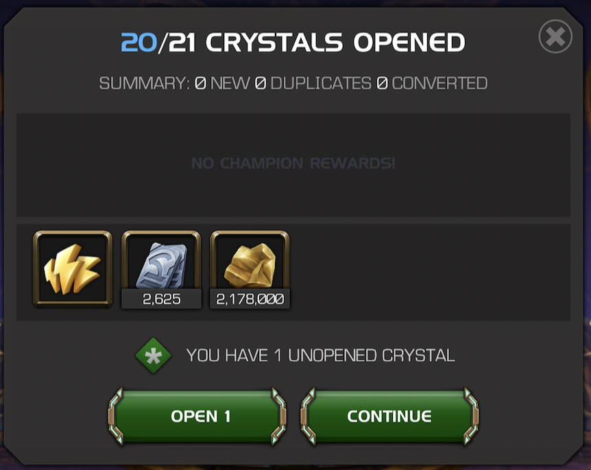 Without getting too deep in the weeds editorializing on the recent changes to crystals connected to ascension, while there's no way in heck I would do that, I might consider buying some in an extremely targeted basis. For example, it is tempting to try my luck with Dr. Strange. I always liked that champion and he was one of my favorite Marvel characters back in the day. His buff is good enough to make him worth chasing in my opinion, but this would be more for sentimental value than anything else.