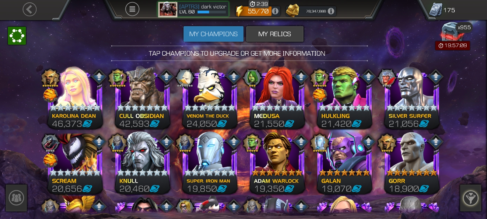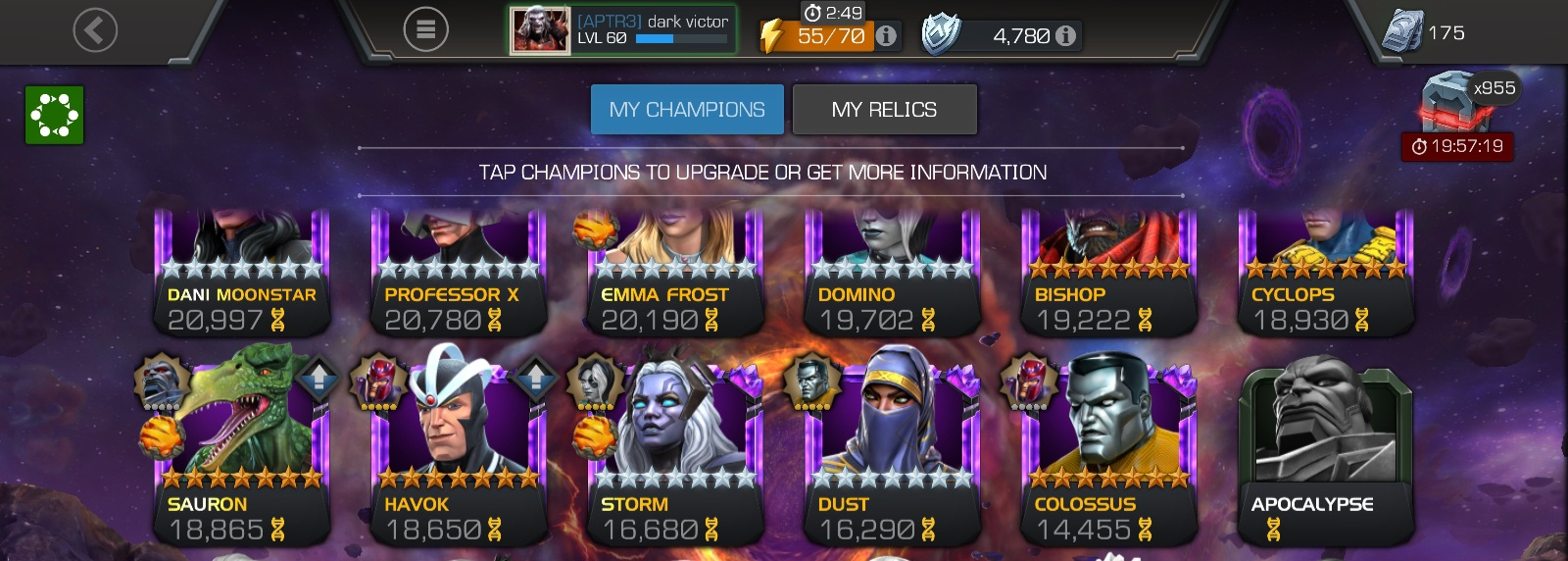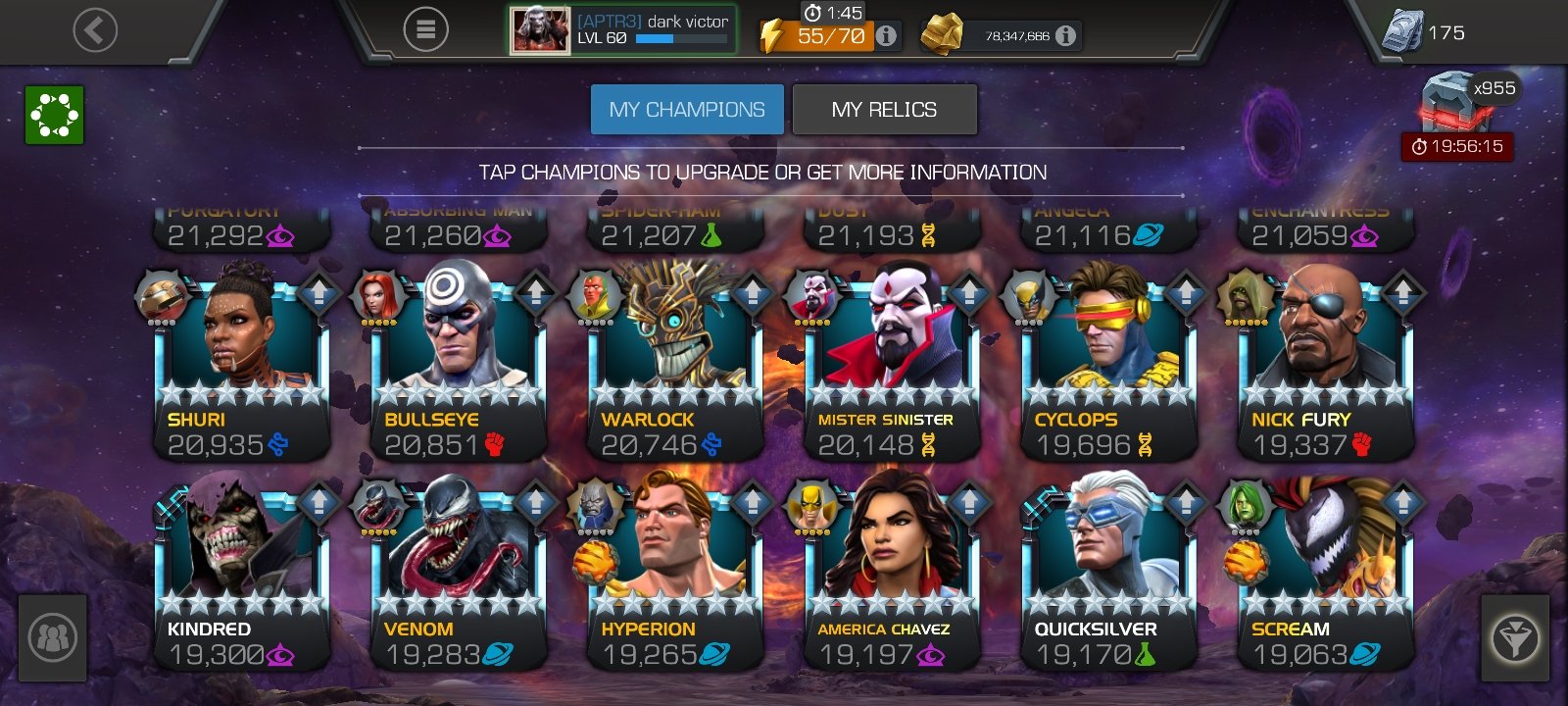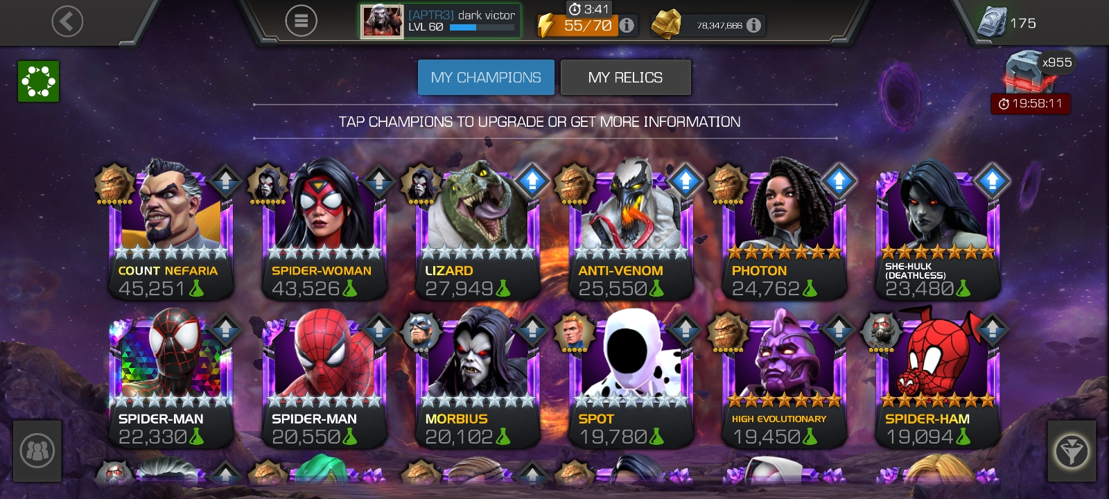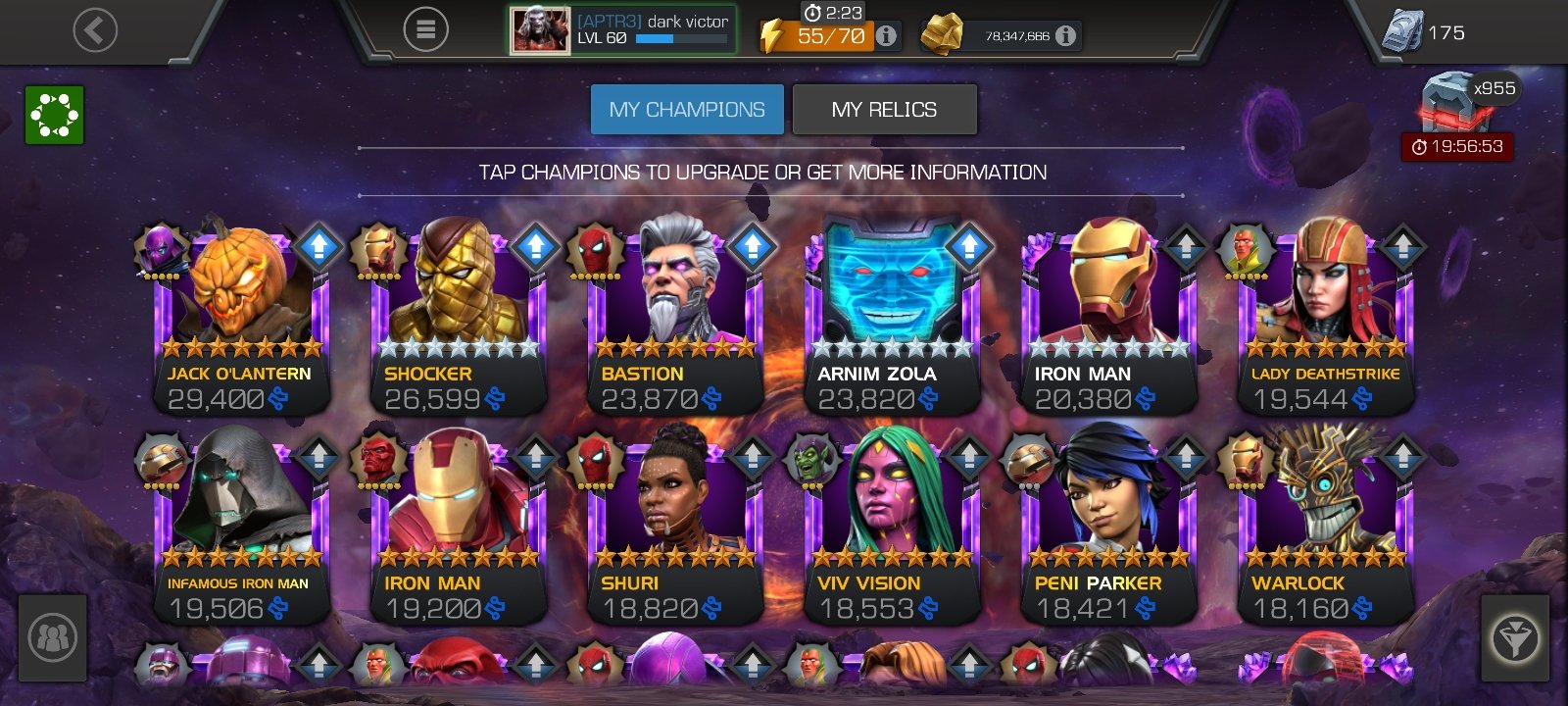 So i can't see your roster but i suggest you this hacks and a quick bleed champ (okoye bullsey venom deadlool whatever) a cosmic champ cause bosses are Ultron Guillotine and Vision and you can take your best guy together (my best is rintrah)