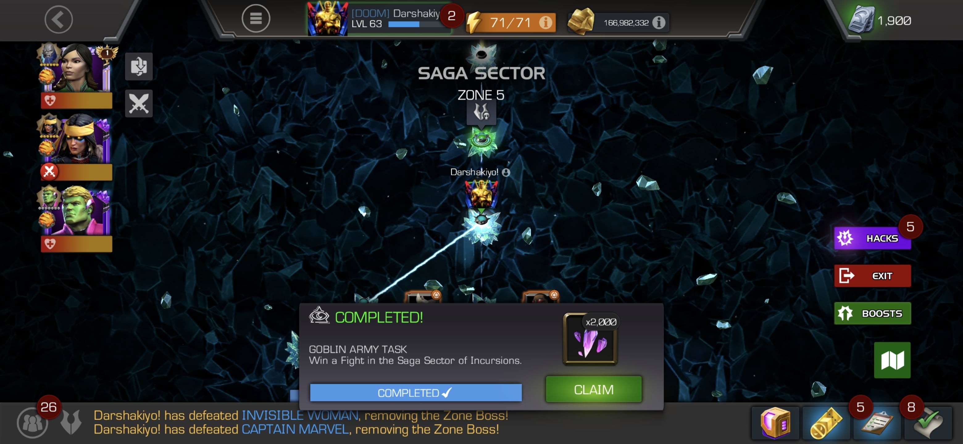 Hulkling with buff cornucopia and fury burst killed everyone with one sp1. Fastest I’ve ever done saga incursions.