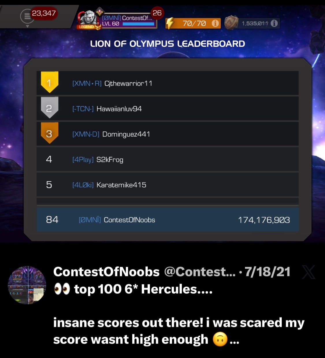 i was there grinding 3 days for hercules 6* arena. I GRINDED for that top 100 spot.