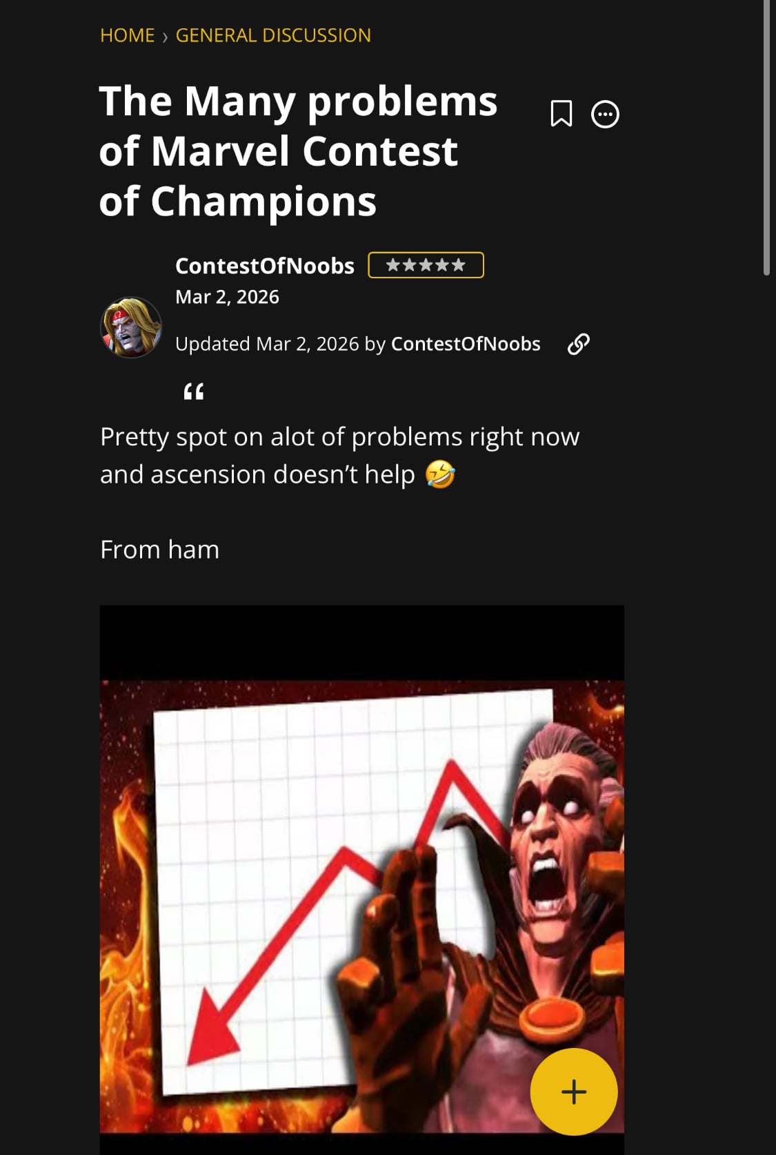 and last. I shared video sharing and showing the many problems of mcoc and even saying ascension isn’t helping.
