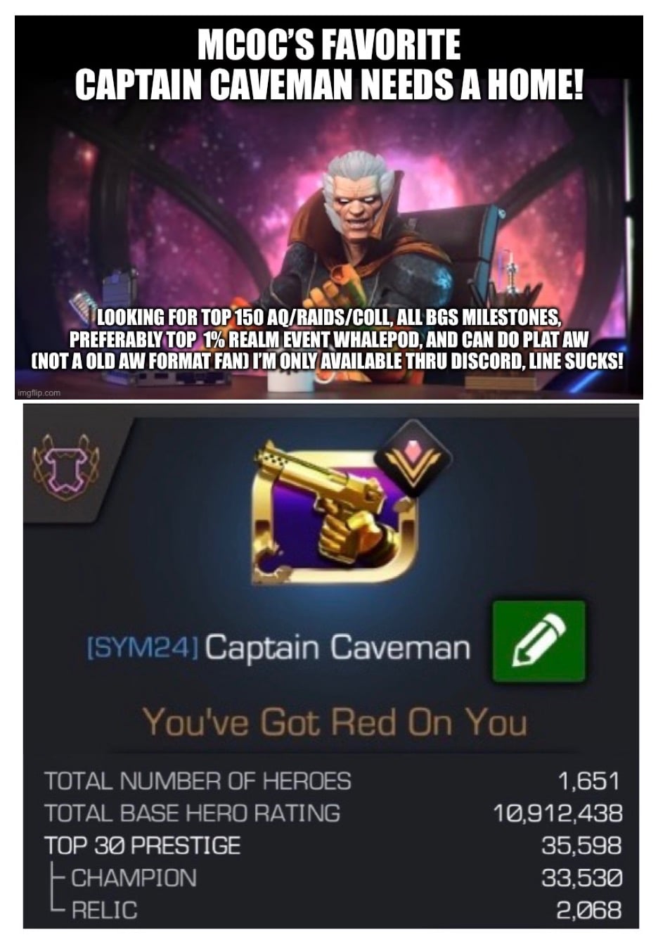 hMU after Meta week IG or on Discord. CaptainCaveman! Thanks!
