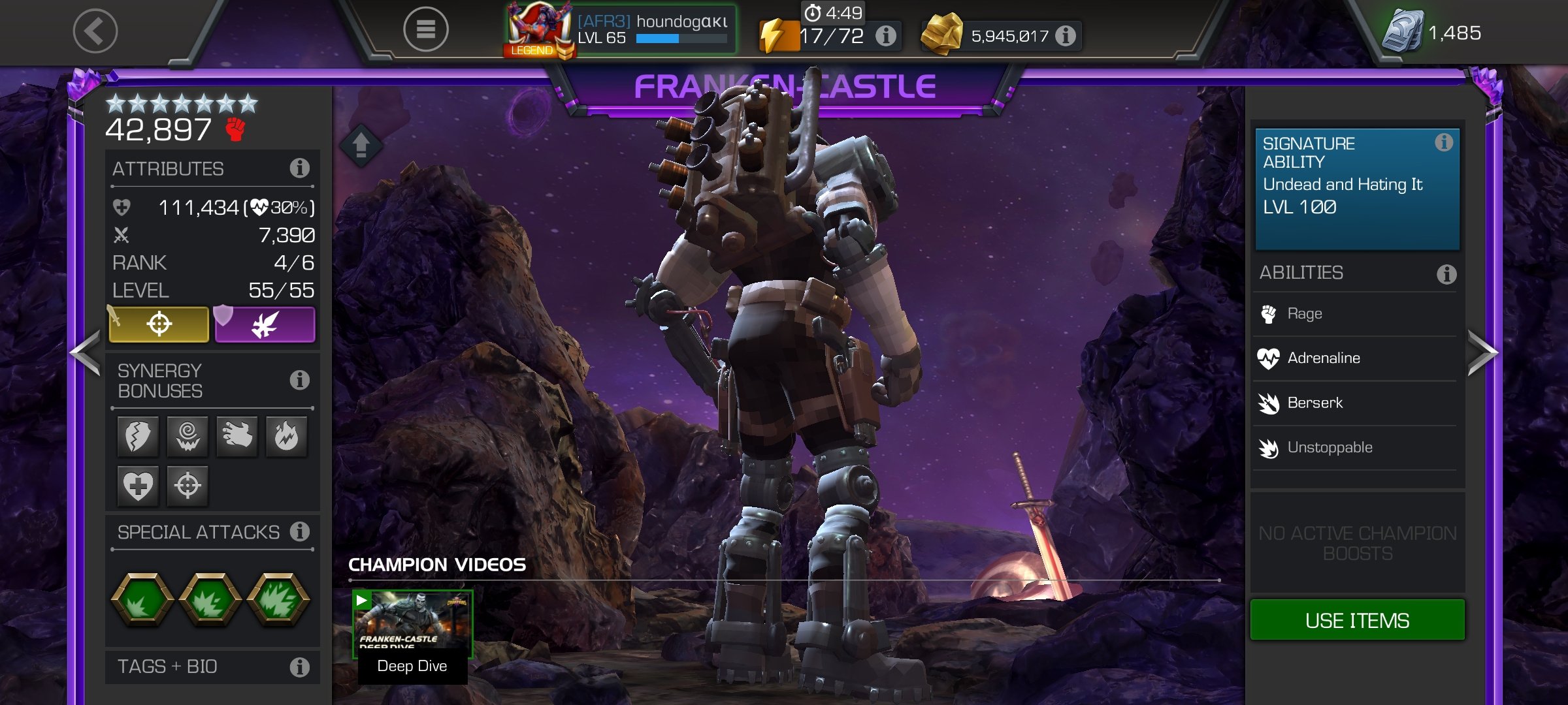 Meet my latest rank 4, Mr. Knight. He is a beast in BGs, he starts fights with the panic debuff turned on so no evades. His tranquilize also cuts out annoying debuffs defenders want to put on you. I actually managed a greater then 50k points against a rank 4 spider woman, before i ranked him up to 4.
