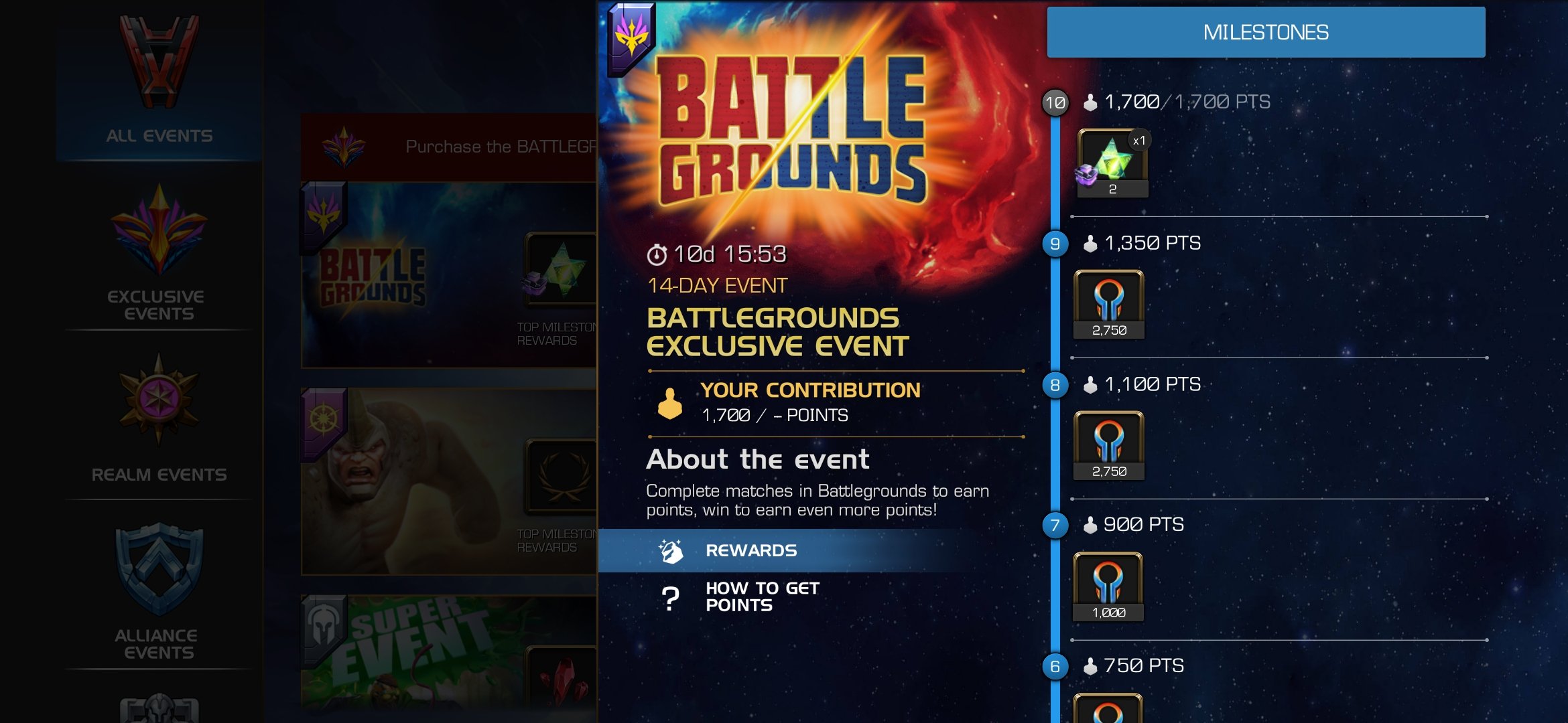 I completed the objectives and got 1700 pts, but got almost no rewards, I only got 800 battle tokens, Kabam needs to compensate atleast 5,000 tokens and 1 mythic crystal.
