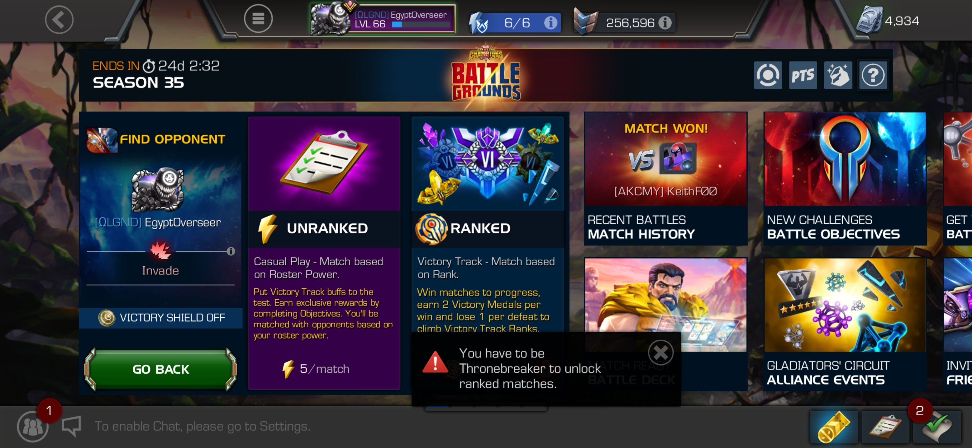 I am currently valiant and can’t join BGs pls assist so that I can become thronebreaker and join BGs.