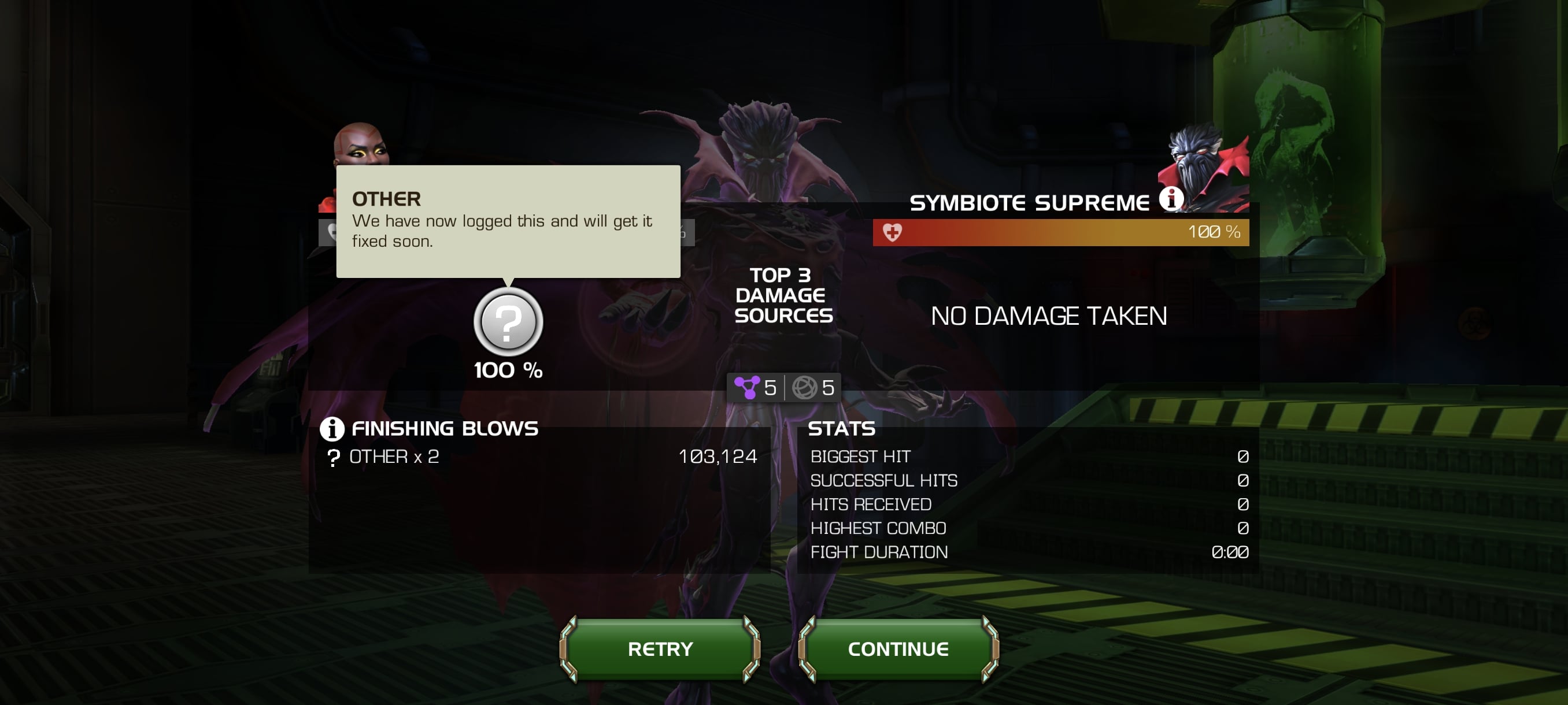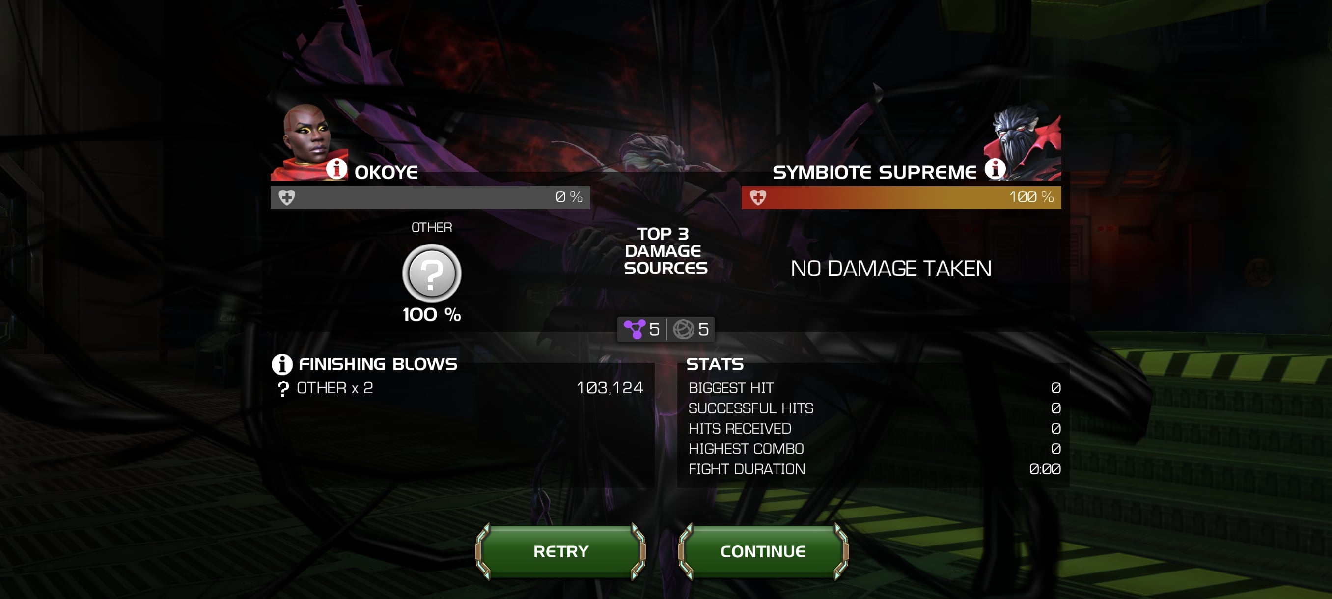 Encountered a bug in 7.1.5 when you fight Symb Supreme with Okoye you get killed when the fight starts.