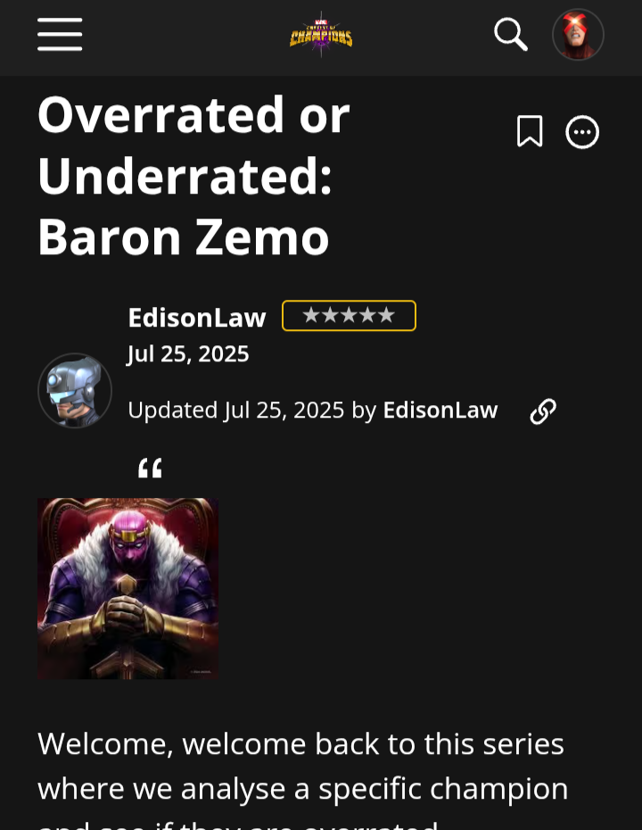 Baron Zemo was one of my 6 stars I pulled the next month he came to Mcoc.