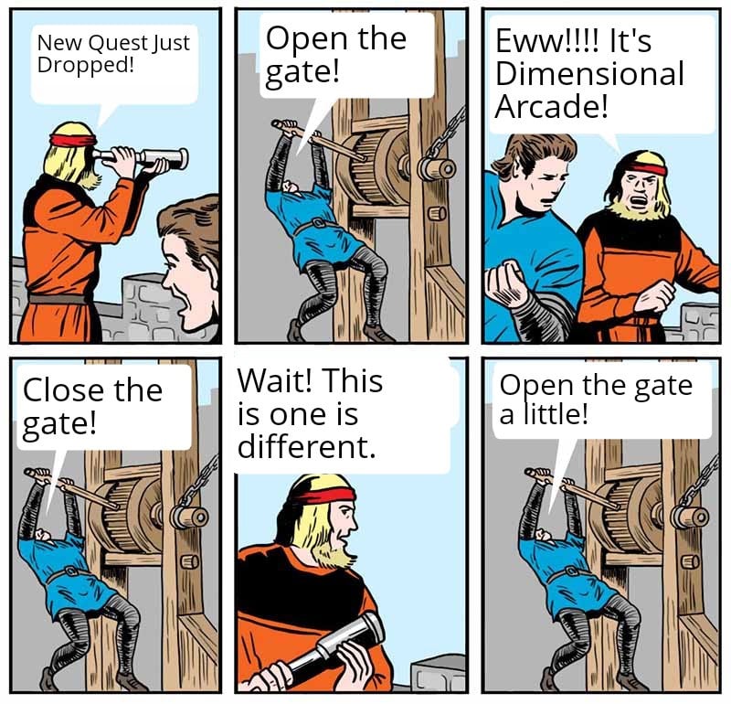 I just tried it out sufficiently. I did actually prefer the old dimensional arcade. I am happier this one has less desirable rewards because I do not want to continue playing it. It's way too hard and just stressful. At one point, I found my eyes getting watery because of how little I was blinking.