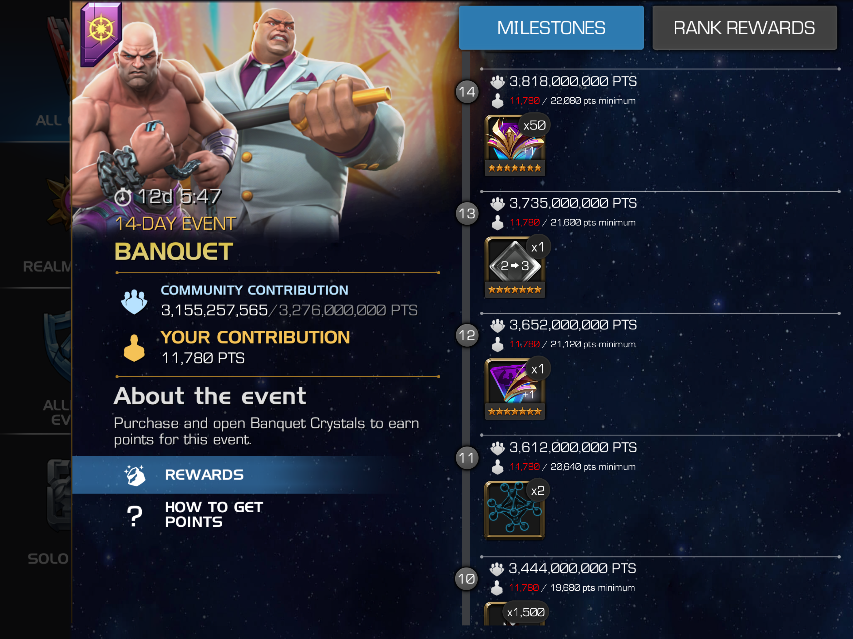 I wish we get a r4 gem, a titan choose one out of 5 crystal, 2 or 3 jubilee crystals, and maybe a box key if kabam is generous.