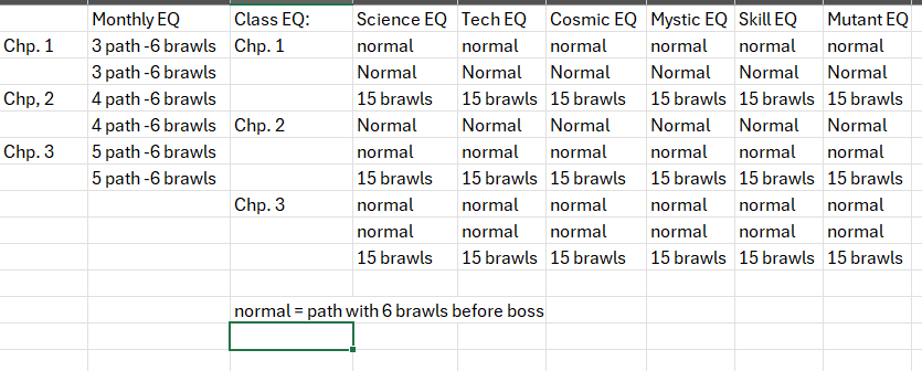 If I had a suggestion, it would be, like Paragon Gaulet addition, copy EQ quest but for each class then, would be at least enough chapters for the months ( maybe all 6 classes but maybe randomising which 3 per-month to better test roaster class survival with synergy bounses too. The 15 brawls can be optional (no need to complete to unlock the next chapter). Without it being based on prestige but progression.