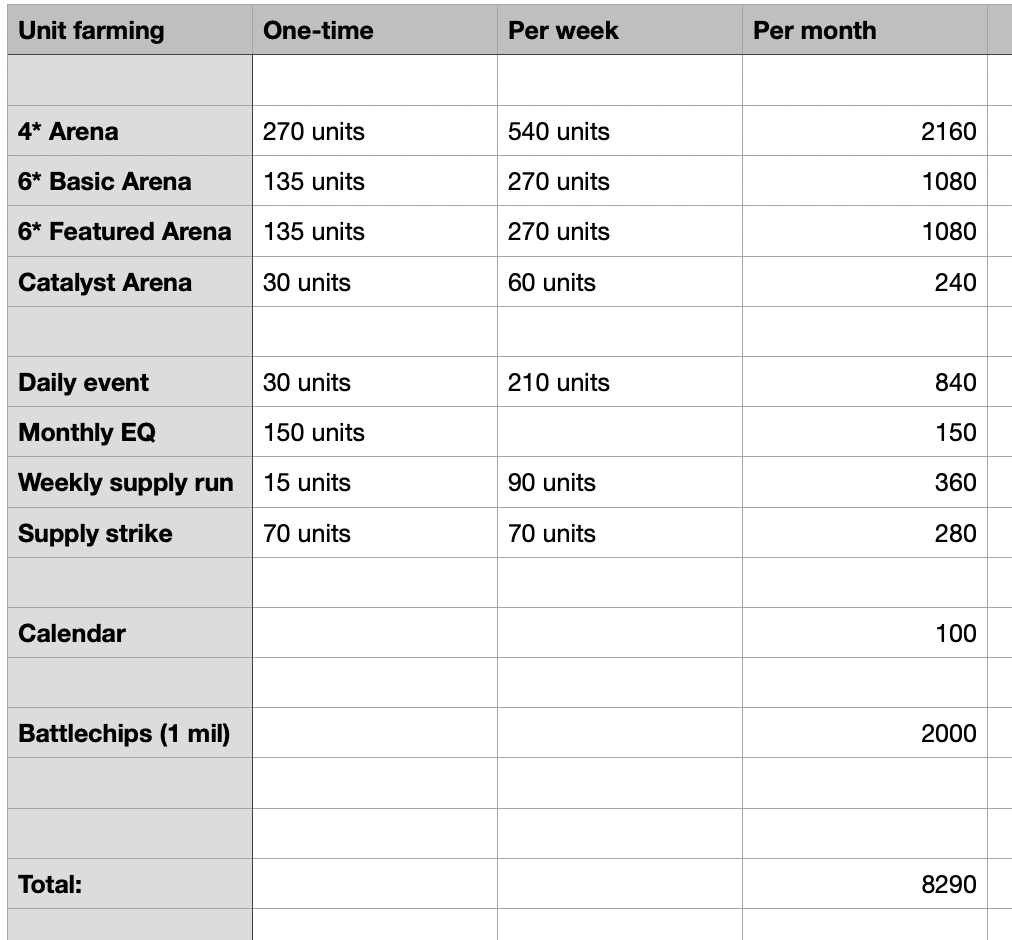regarding the unit situation, here is how you can get units without spending, on a monthly basis on average.