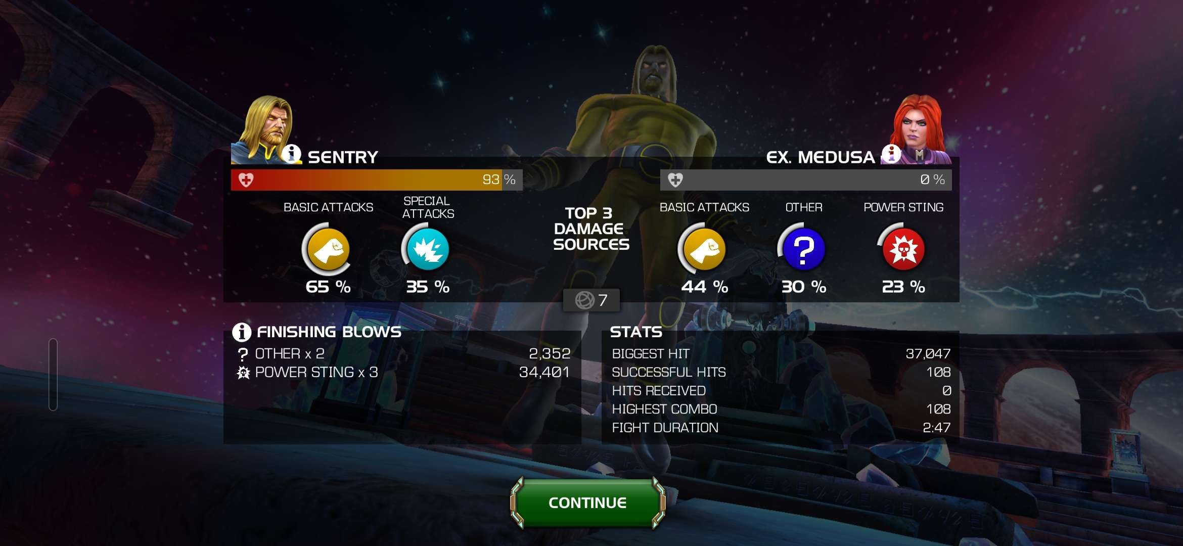 I loved how the quests and the opponents highlighted each champ's strengths. I loved getting to use some of the coolest characters in this game. I loved that the quest wasn't a million fights long and I didn't have to swap champs after every fight. I loved that I didn't have to replay the quest dozens of times.