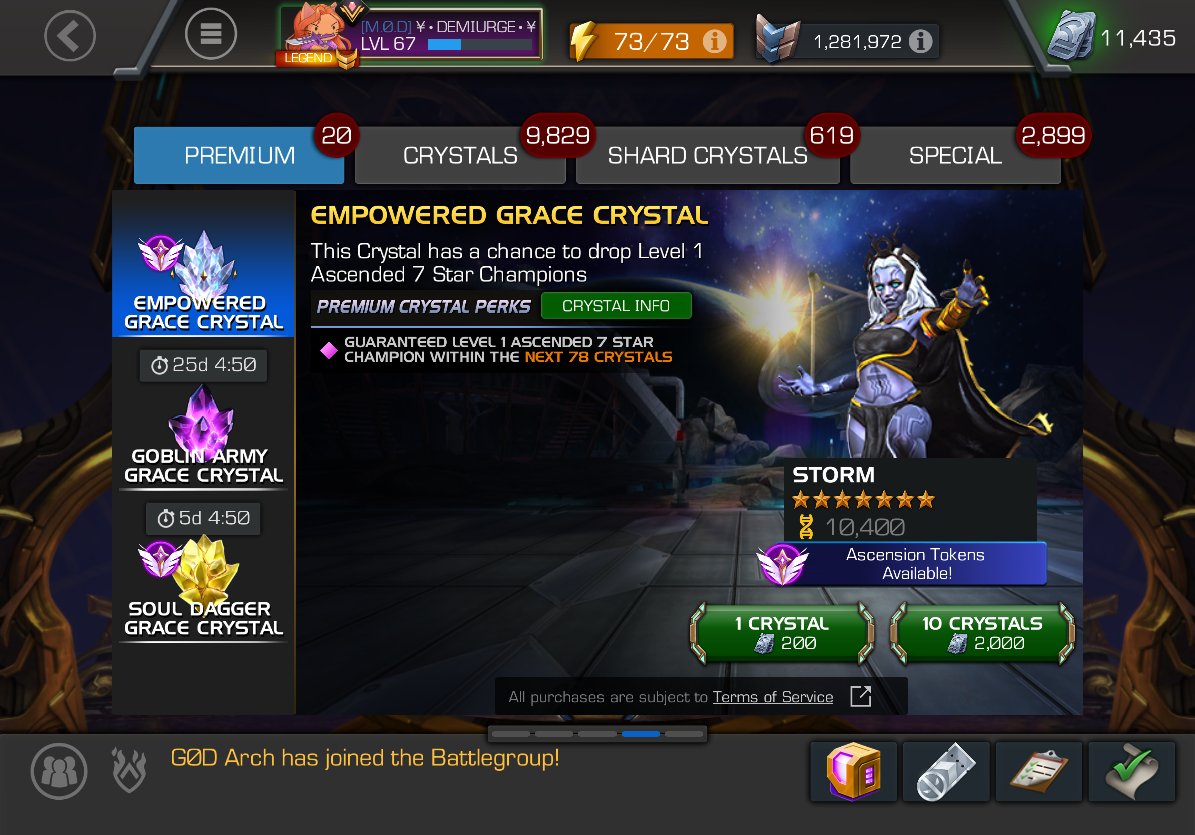 Still not convinced? Let’s compare him to currently the best champ in the Titan pool, a champ who has very good damage and that I’ve already seen in many BGs decks at r4. r5 ascended 6* Doctor Strange: