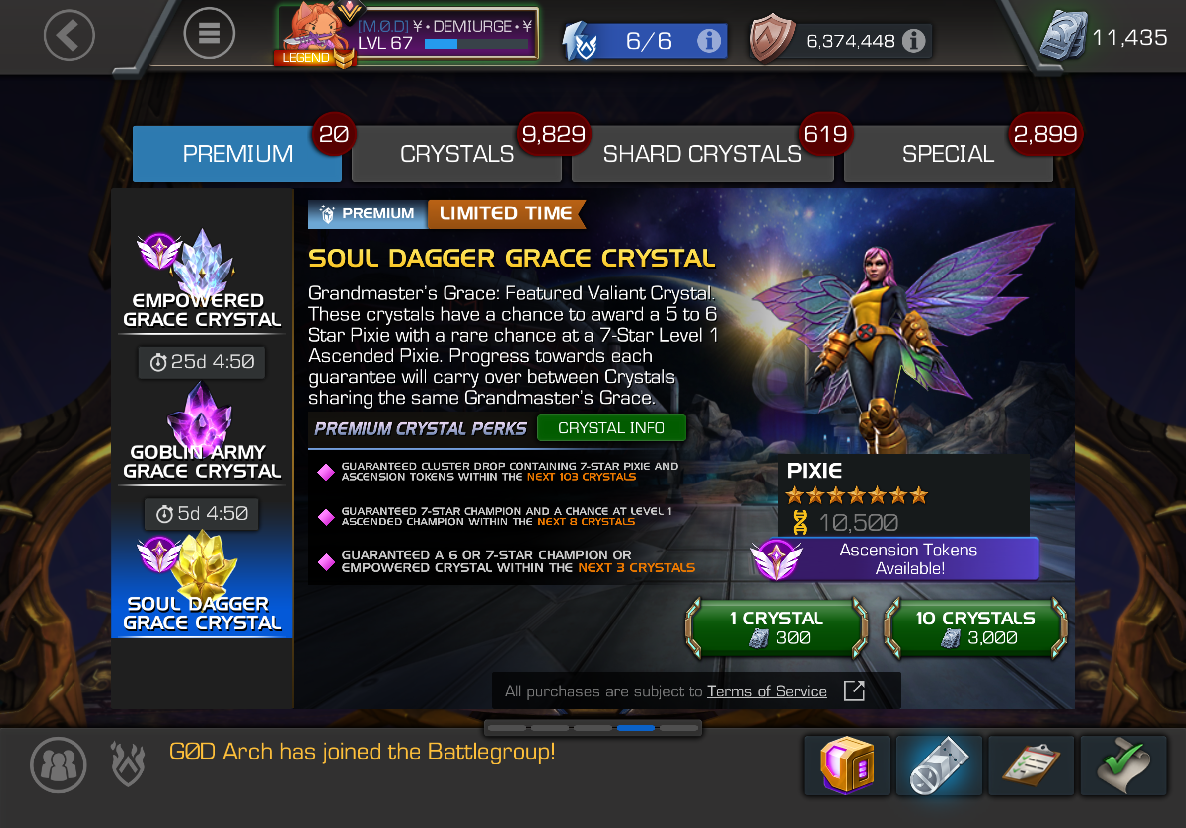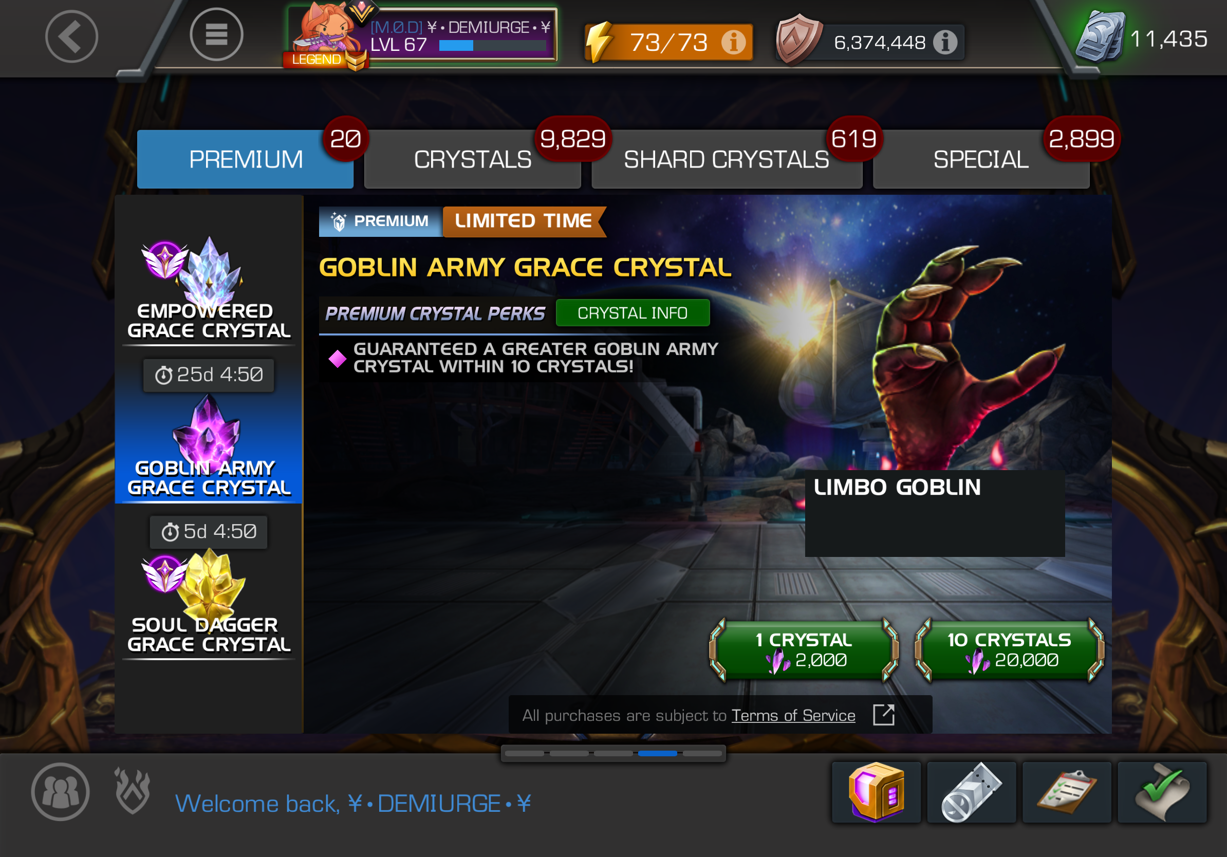 I have 20+ goblin to claim but unable to as it doesn’t show then crystals in premium