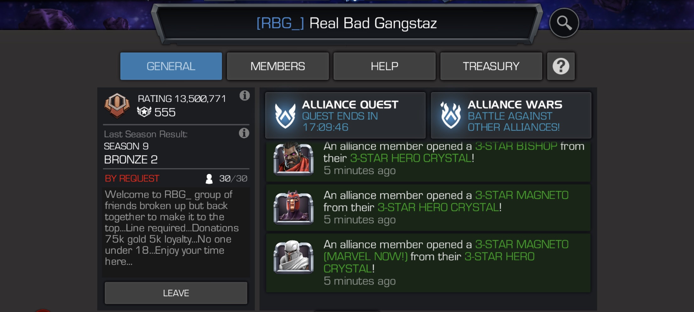 We’re looking to replace a few slackers who aren’t pulling their weight in our alliance.. communication and activity is important in our home since our major focuse is in AQ and don’t really care for alliance war anymore (we still run 1-2 bgs for those that still like participating in aw)