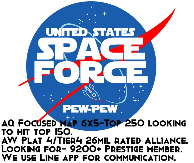 We need a member to head into the DANGER ZONE with the Space Force, a Platinum alliance of experienced summoners. We’re focused on constant improvement of our rosters, clearing challenging content, and having a good time all the time. Our current missions: