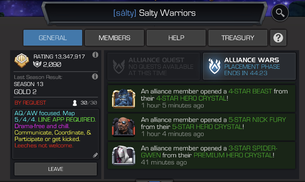 We are very active, friendly and supportive of our members. The majority of our alliance members are very skilled, many different timezones are represented.