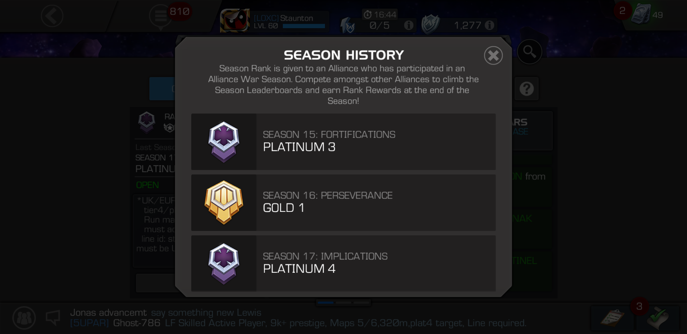 Plat3 for 3 consecutive seasons s13/s14/15 so we are well organized