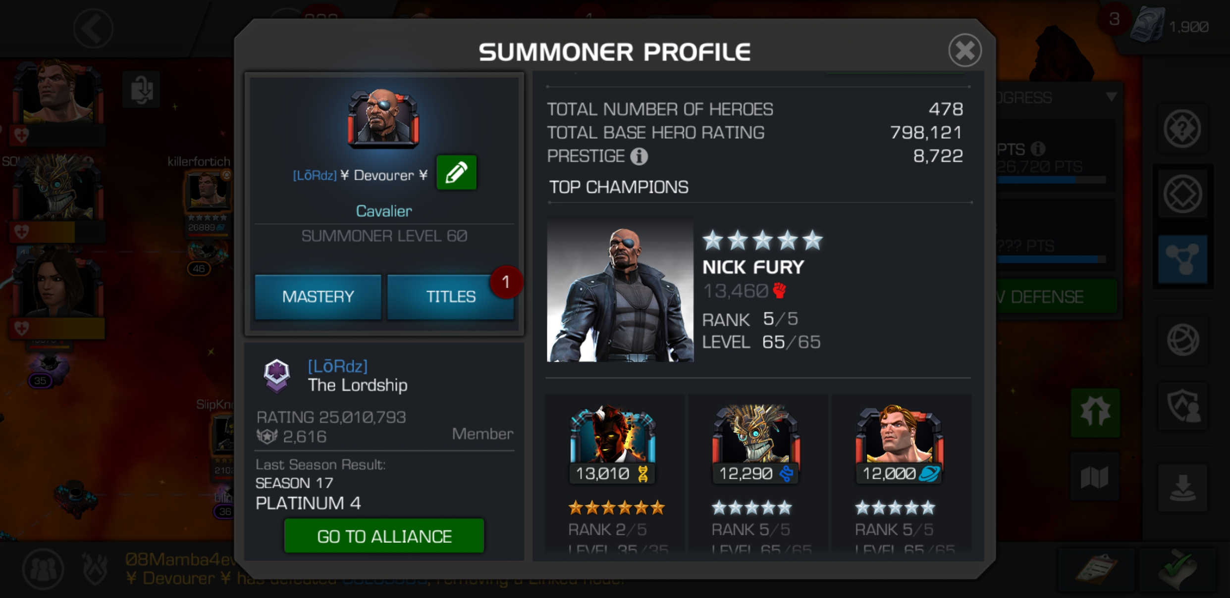 Hi my name is Devourer i am looking for a alliance than runs map 6x5 and is actively pushing to do platinum 3 on a monthly basis, i am a quake player and can run most paths including (1,2,3,5,6,7,8), on boss island i can take out most bosses including stunn immune champs, my main role is to clear doom boss on node 53, other times i take out node 49 and 52 as those arent a hinderance to a quake player, in map 6 i run Path E,G,A and can also take out mini boss on ocassion, alliances who have hit p3 or on the verge are the only ones i will consider, i will not join alliances who are barely p4 or gold 1 nor will i join alliances that are restructering, if your a established alliance looking for a extra push when it comes to the flow node i can be of service