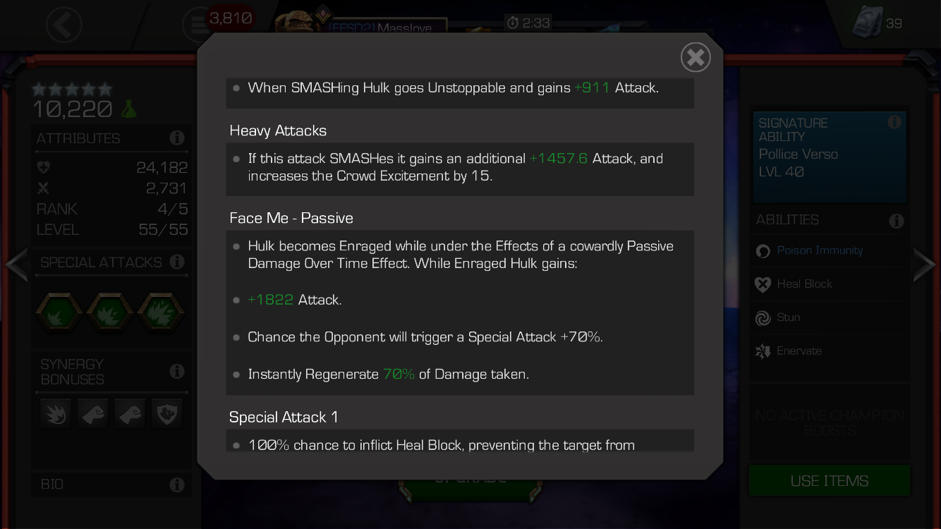 On Chapter 3 Quest 2 of Variant 1 my Gladiator Hulk did not trigger his FaceMe mechanic on the passive 1,1% Degen node.