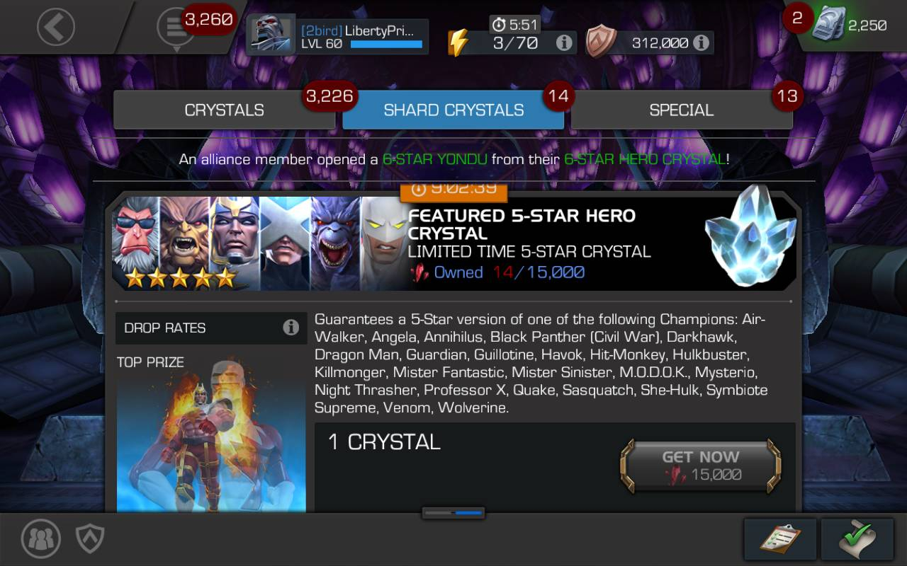 Annihilus, Duped Black Panther Civil War (TWICE BACK TO BACK AND HE WAS ALREADY DUPED), Dragon Man, Guardian, Duped Havok, Hit Monkey, Hulkbuster, Killmonger (though my next 6 Star after that was Killmonger), Mr Fantastic, Duped Mr Sinister, Got and Duped Mysterio, Duped Night Thrasher, (didn't pull 5 Star Prof X but got him from the 6 Star Featured), Now Quake, Sasquatch, Duped Symbiote Supreme, and Wolverine (who I have all the Synergies for).