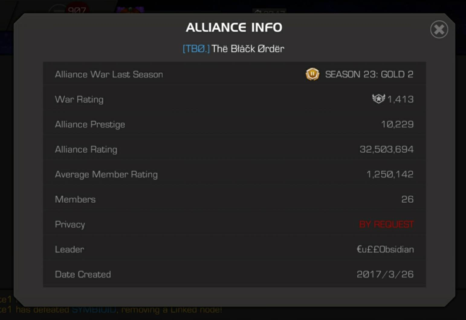 The Black Order is a relaxed AQ-focused alliance who understands that life takes precedence. However, communication is an absolute must especially to note when you might be absent for a long period of time. Line is required.