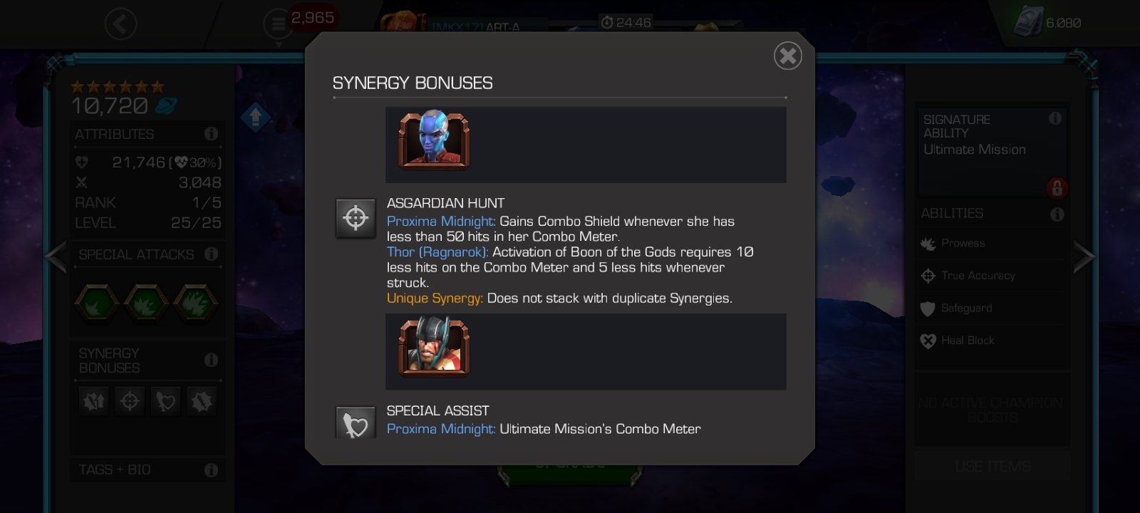 https://youtu.be/3ZXo-utLaWEI'm playing in Arena with Proxima synergy with Thor Ragnorok all the even i go at 30 combo Thor Ragnorok doesn't even gain Boon of Gods but if he gets hits he'll gain boon is gods at 15 hits that he takes but