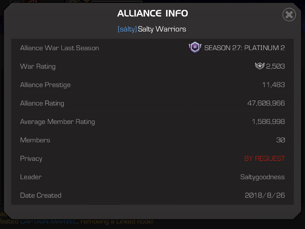 We are a Plat 1/2 alliance with war focus that values skill and team spirit above all.