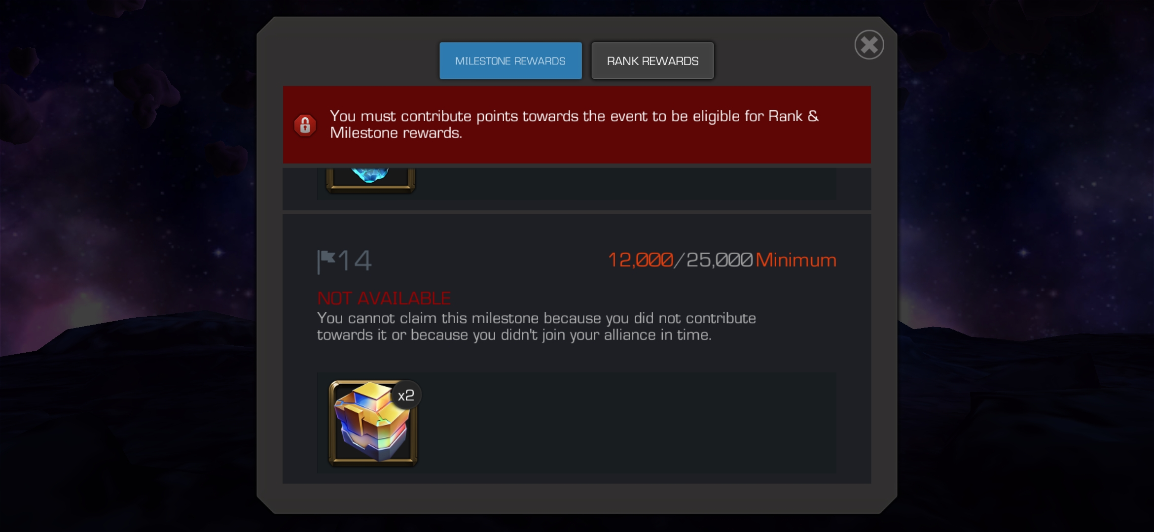 So I checked the alliance gifting event and it said that I had to contribute points towards the event to be eligible for the rank rewards. Now I gifted 4 ggc and I have 12k points and this is how the milestone tab looks for me.