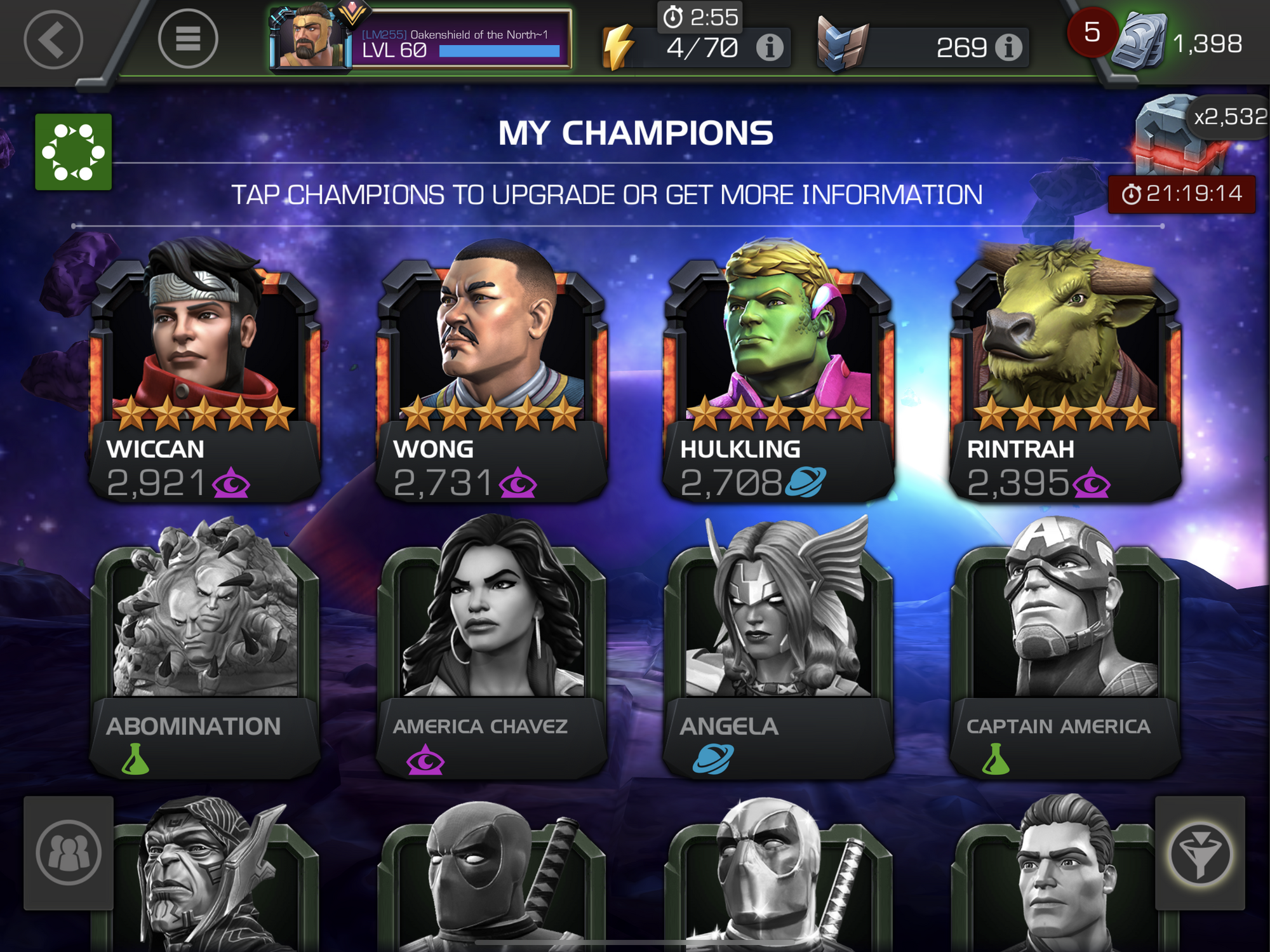 Opened 6 5* featured yesterday (had a bunch of 5* shards and needed to recharge my ISO) and pulled Wiccan, Wong, and Hulkling. Opened 3 6* featured and pulled Hulkling. Opened my Paragon weekly cav today, pulled a 5* nexus, then pulled Rintrah out of it.