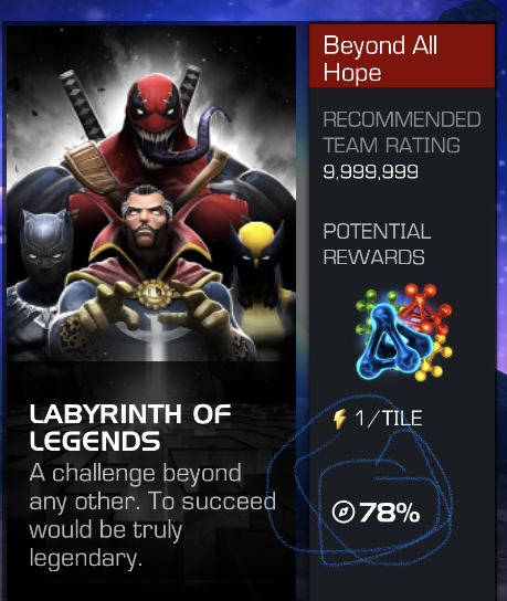 So my brother did lab of legends a couple years back. He wants to go back in there to get the 5 star ultron prime because he thinks he looks cool. he has the right champs to go, but we are trying to figure out how many paths he has left to do, our guess is 2. He doesn’t remember because this was years ago. It is showing him 78% done. I know there is 7 paths. Please help us and tell me how many paths are left?