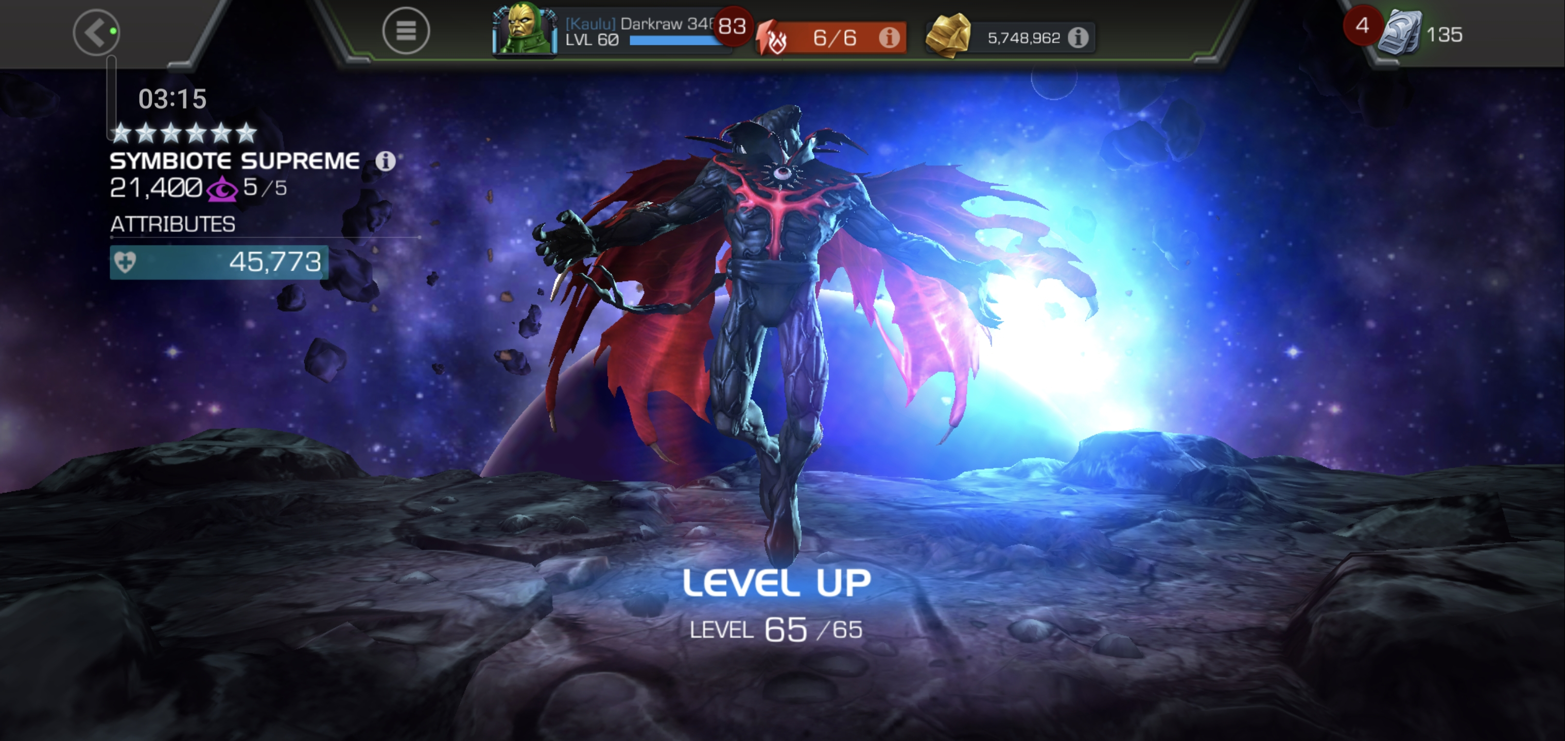 Symbiote supreme was my most wanted champion years ago, I really like symbiote characters, and I really like magic characters, and I really like villains... the concept of Symbiote supreme is so sick, I love his red dark magic, I love the design, I love how he can open a portal to that weird dimension that contains that symbiotic beast that it seems have a big hunger like Galactus... if anyone knows and can elaborate about that (or about anything about the champion's story) I'll be glad to hear.