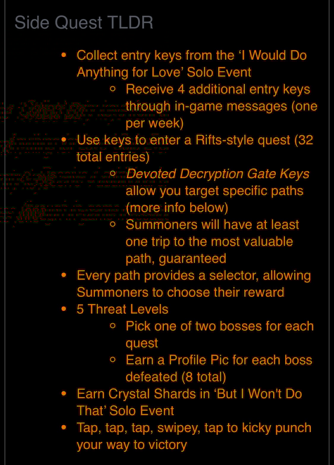 Just to expand on that last point about rewards. Those 6* shards may as well be 5* shards at this point. They are a source of iso and nothing more. T2A & T5B are the new T1A & T4B for players at this level. The 11,400 T6B fragments are ok, but they should move up at least one tier to 9% chance. Oh and put an equivalent quantity of T3A into the rewards. 6* awakening gems are quite common now and don’t belong in the 1% rarest rewards tier. 7* shard quantity is decent, but it would be nice to see a smaller quantity in other tiers.