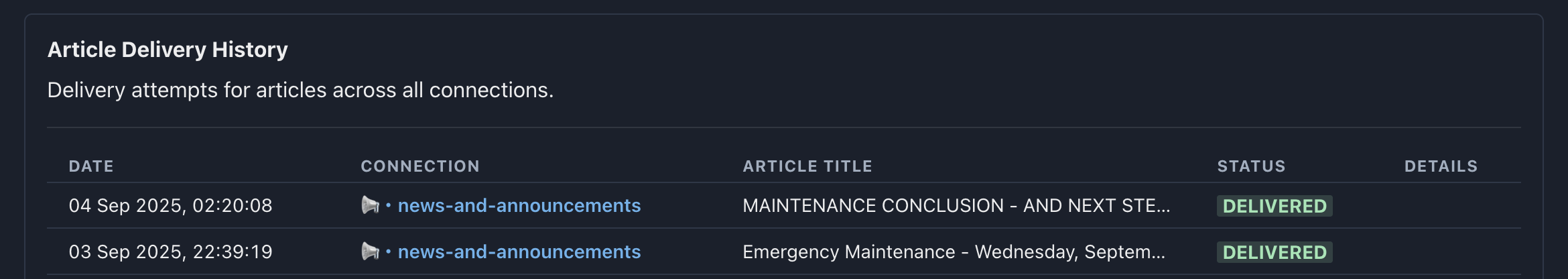 Thank you! The website feed was working on September 13th, but is now also unavailable, and the post from September 17th was not delivered.