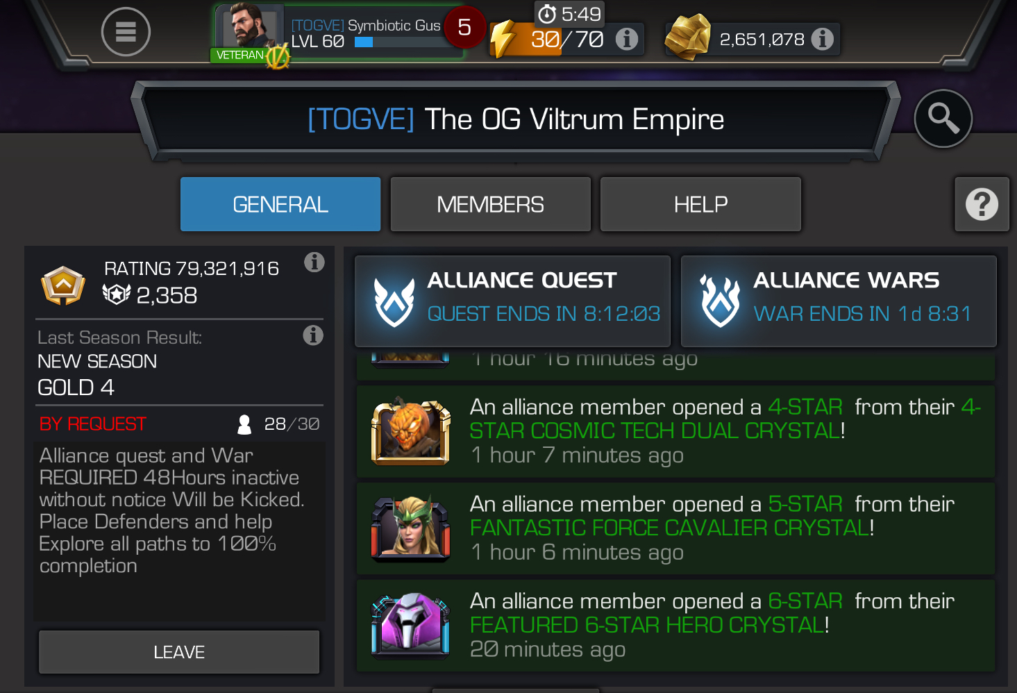 Must be active during War on-season. Two or more absences in War on-season will result in a kick.
