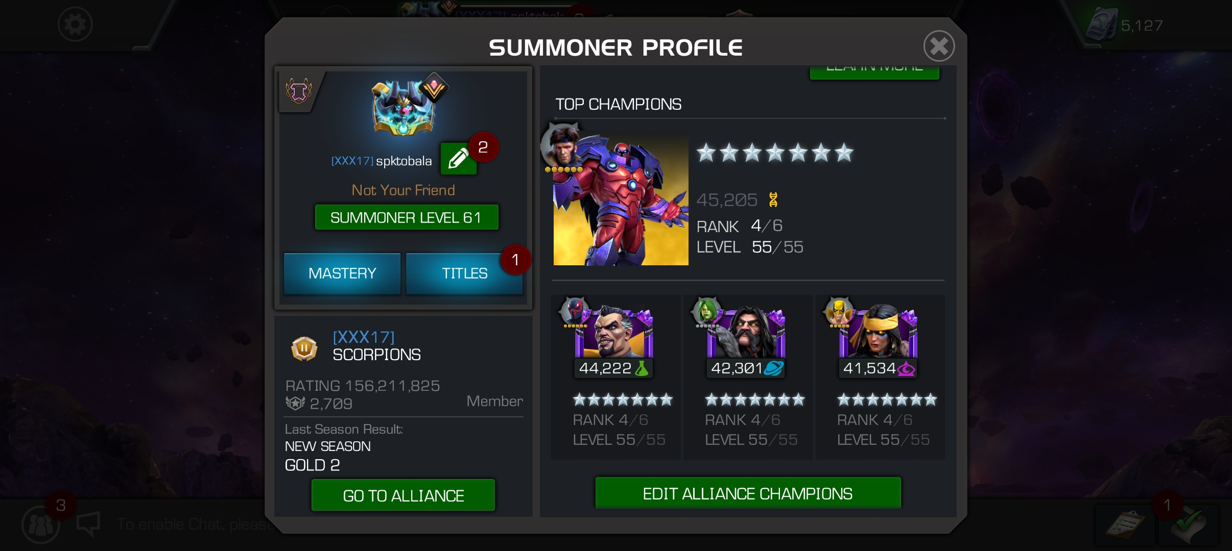 MAP 6 , Gold 1 on-season only, Raid and we use Groupme for comms.