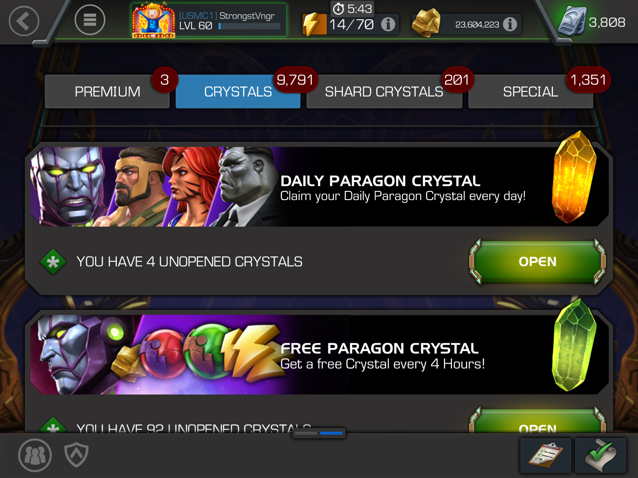 You should collect them from the web store: https://store.playcontestofchampions.com