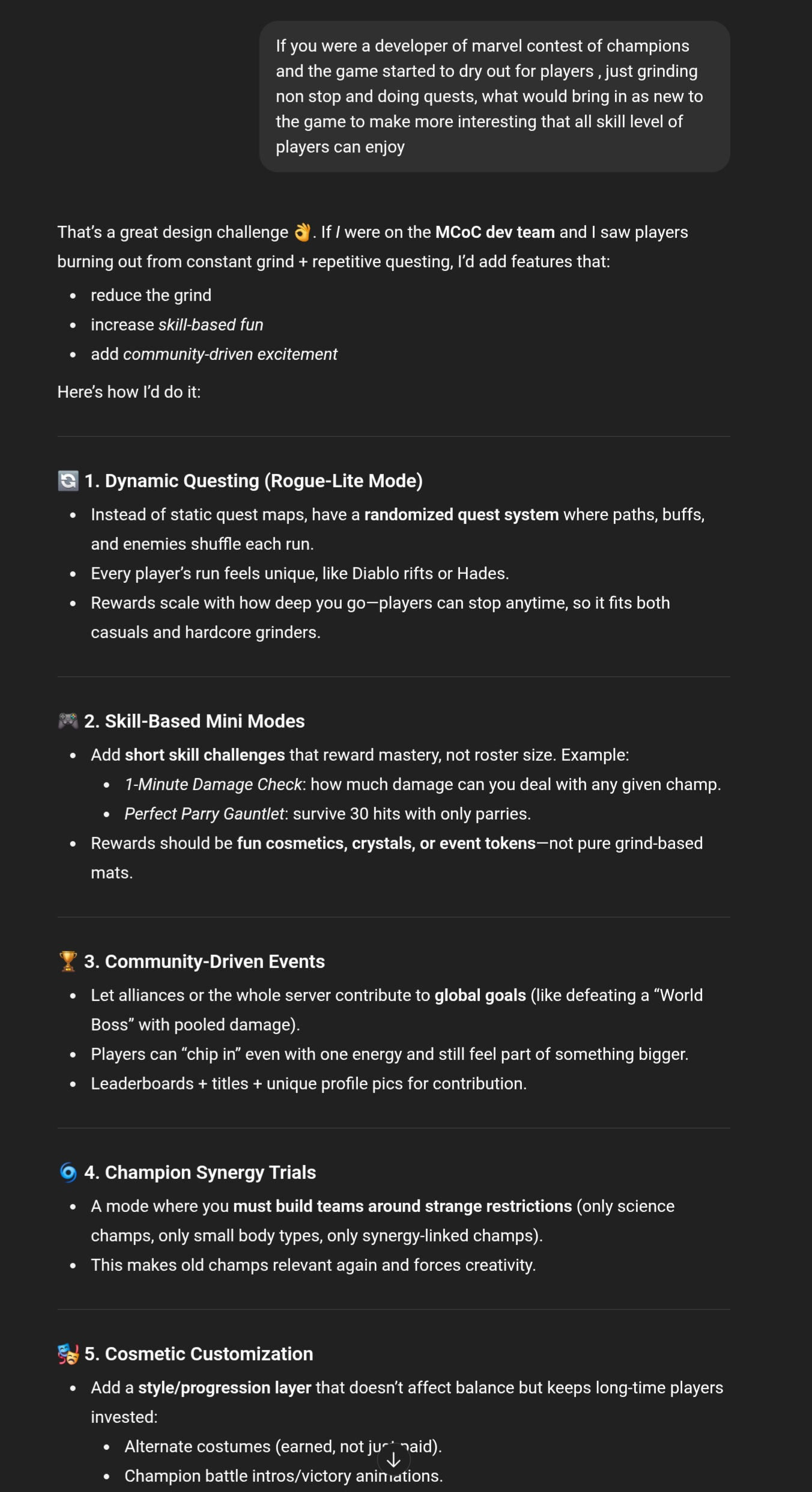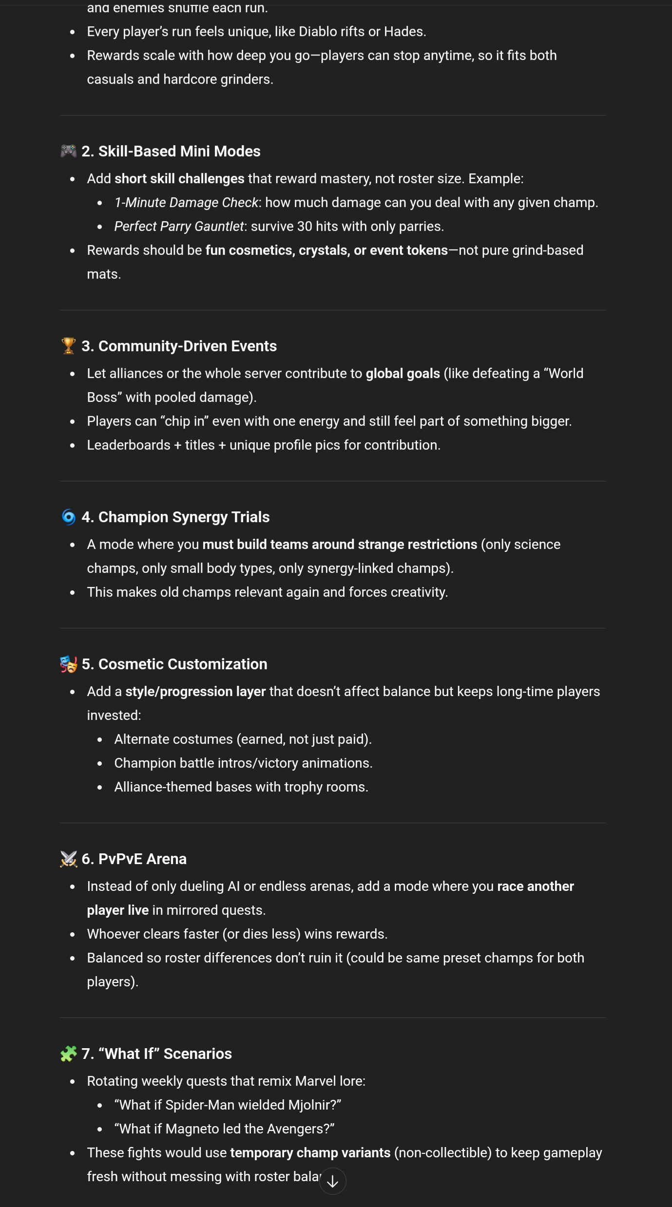 So recently I returned to this game after 3 years and became Thronebreaker a week ago and paragon today and i felt like this quest over quest all it is forward just putting in a combination of nodes on the defender and making them "difficult" and you would need specific "GOOD" champs to clear them and this concept of "GOOD" champ shouldn't be a thing , i think every champ should have pros and cons but many of the old champs has only cons. I think each month one of the most unused or old champ must go through reworks.
