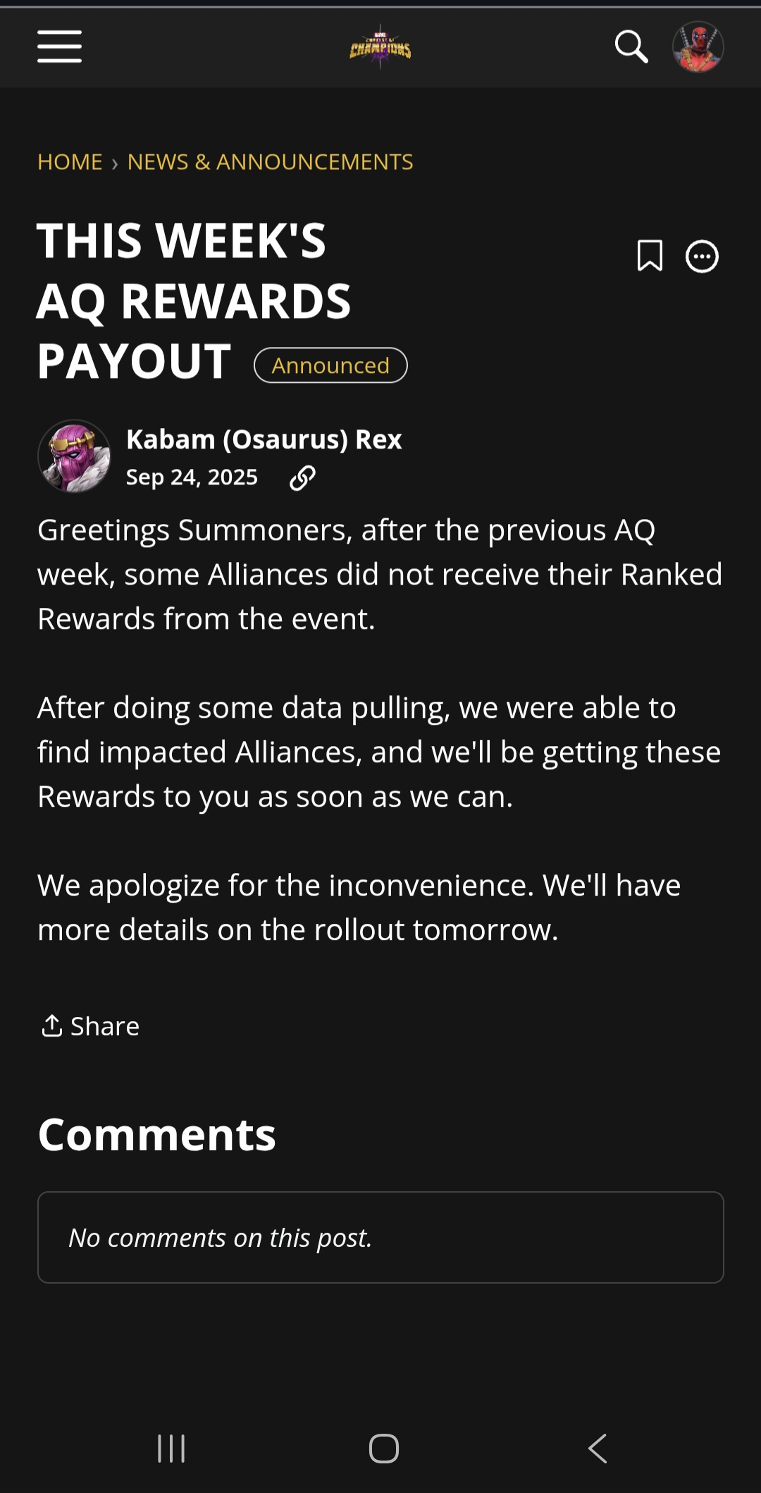 Kabam is aware about it and working on the issue.