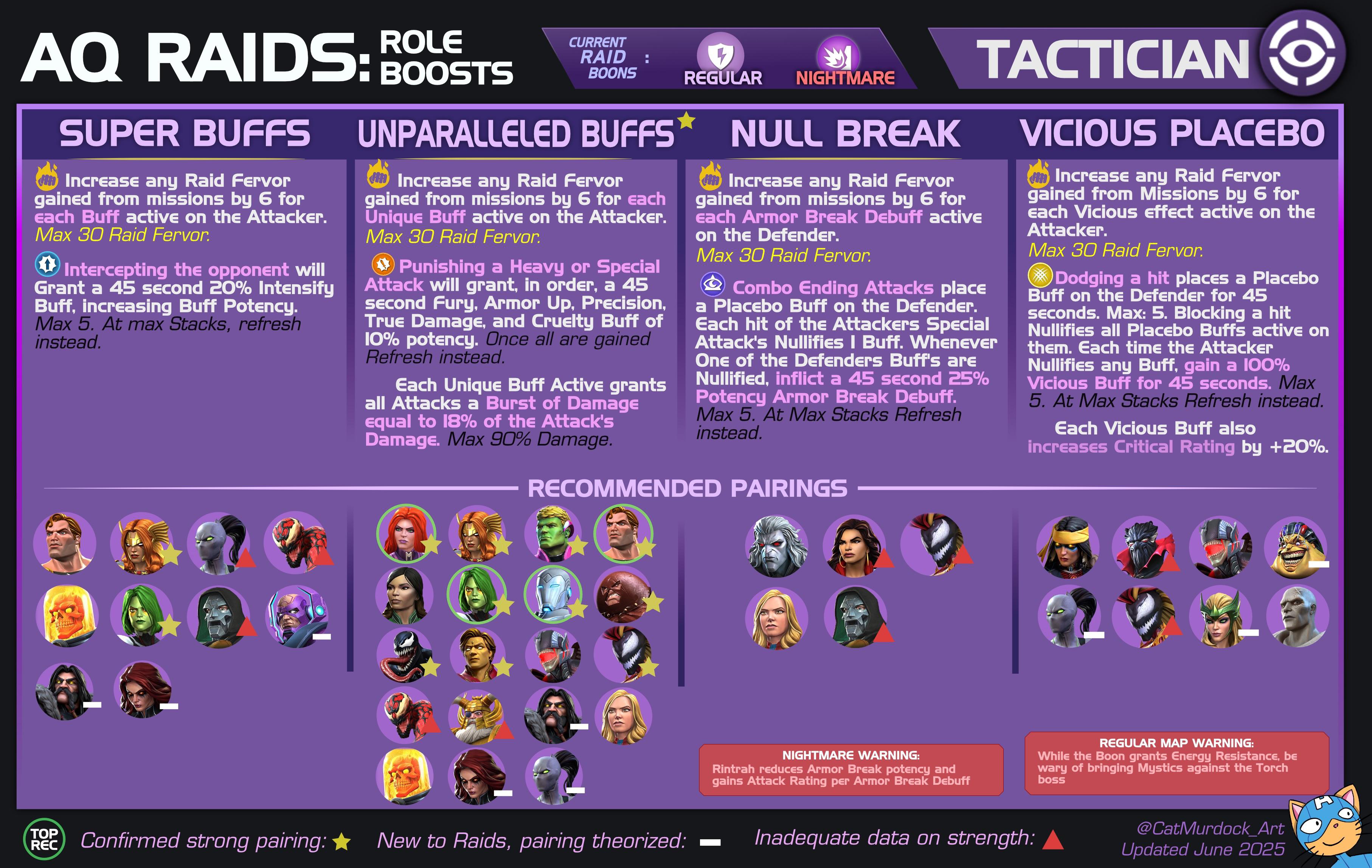 Hulking with nerfed regen and without indestructible and Gorr with 1% Regen or Heimdall without the part of ignoring Dexterity, for Mystic characters and others like Ronan or Venompool if they become attack options