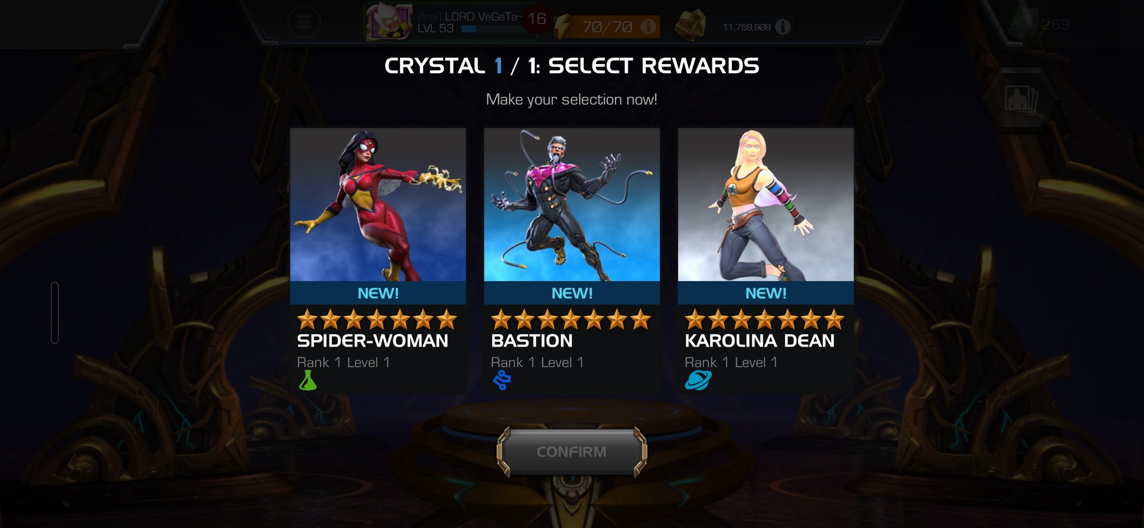 Just opened the titan nexus and got these idk which of them is good I like Karolina deans design but I have heard good things about spider women I need a attacker that can help with story content especially paragon . I have herc and spider ham as Max six star and 200 sigs please keep this In mind and I don't have any good tech champs