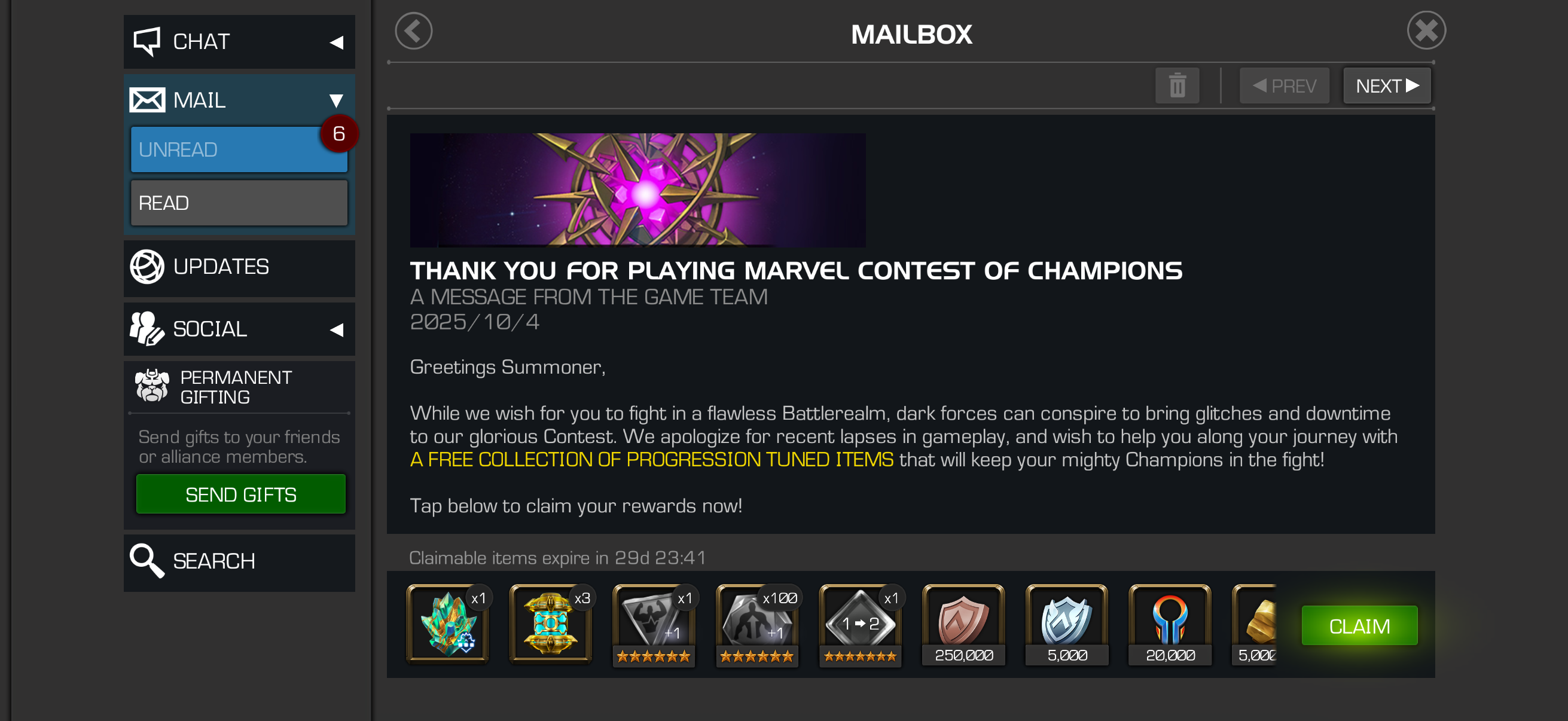 If Kabam does do a claw back, they will need need to temporarily freeze your account anyways (even if you are innocent and don't hit claim) while they delete it out. At this point, might as well claim it and hope they don't do a claw back. Either way, no downside to claiming it and opening the crystals, especially since Kabam has had all day to address the issues and has been quiet.